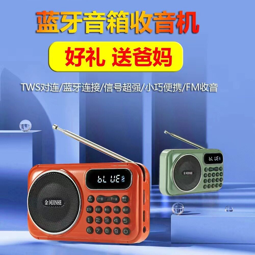金河S55蓝牙收音机 TF卡优盘带显示屏 可两机对连外置硬天线 爆款
