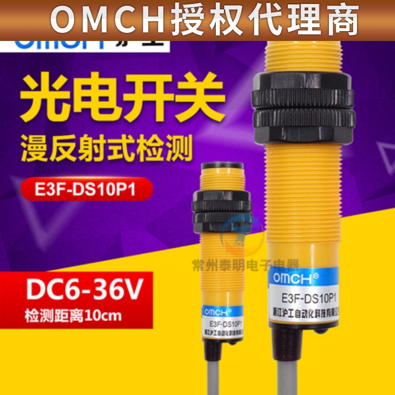 沪工漫反射PNP直流常开M18感应传感器三线24v光电开关E3F-DS10P1
