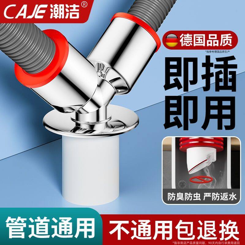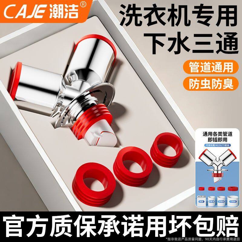 潮洁阳台洗衣机专用下水三通浴室洗手盆地漏接头通用下水器排水管