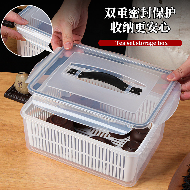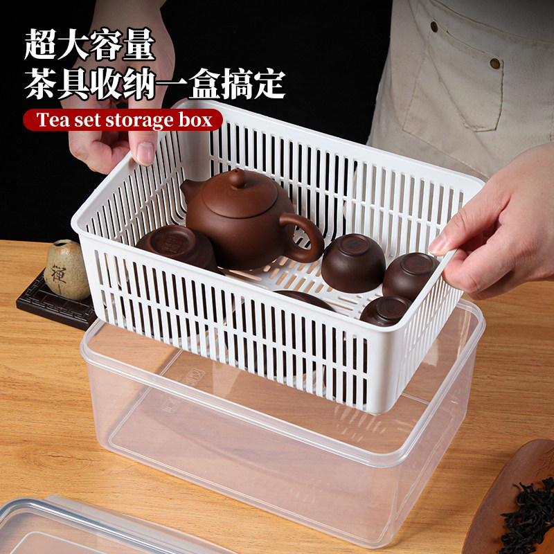 家用带盖防尘茶具收纳盒装放白酒水杯工夫茶壶桌面沥水整理置物架