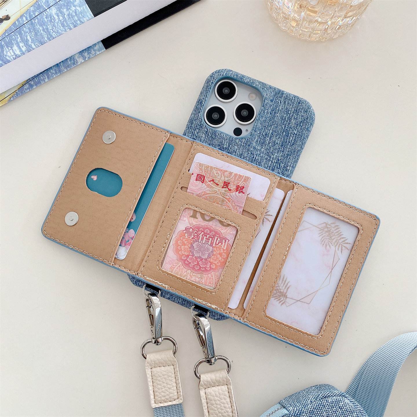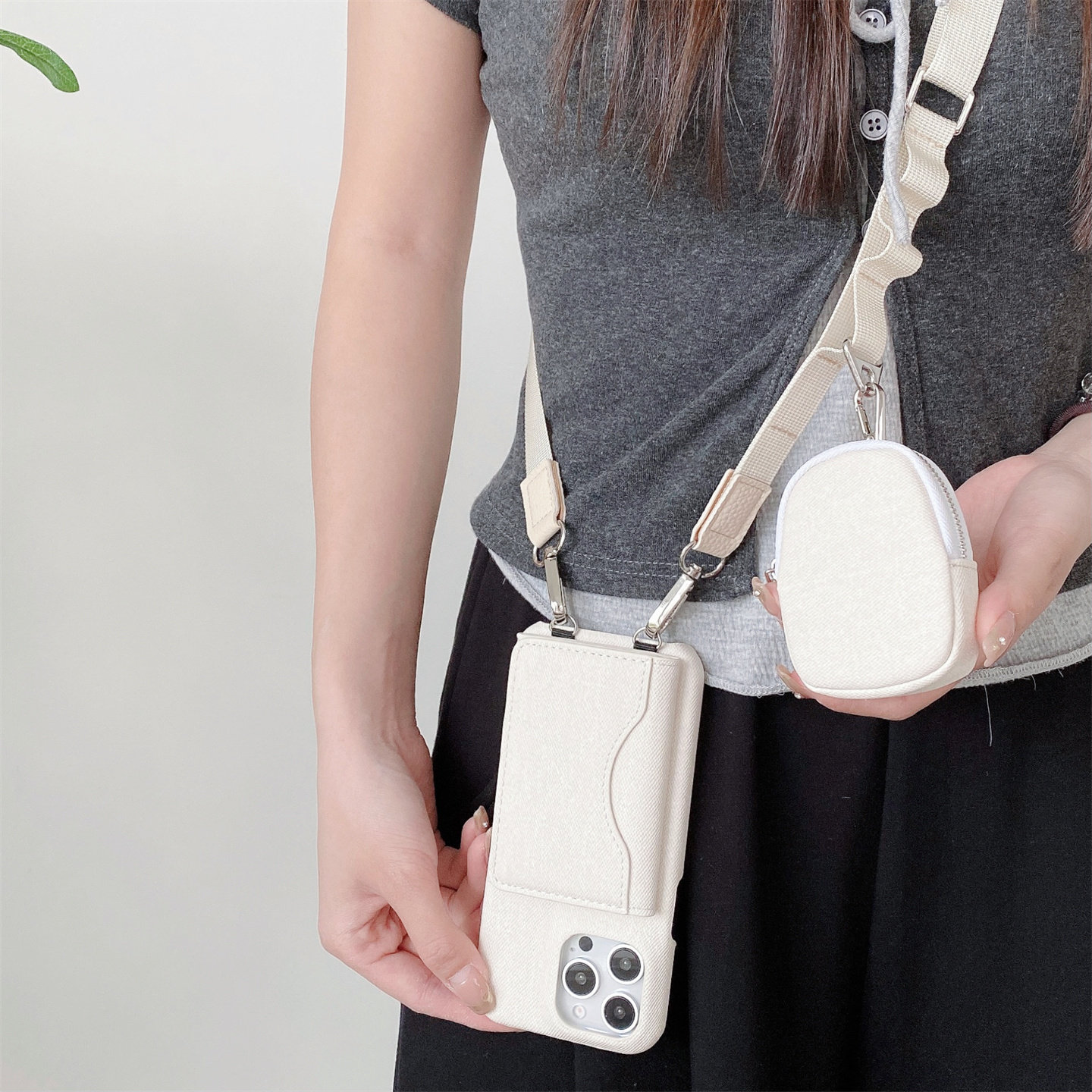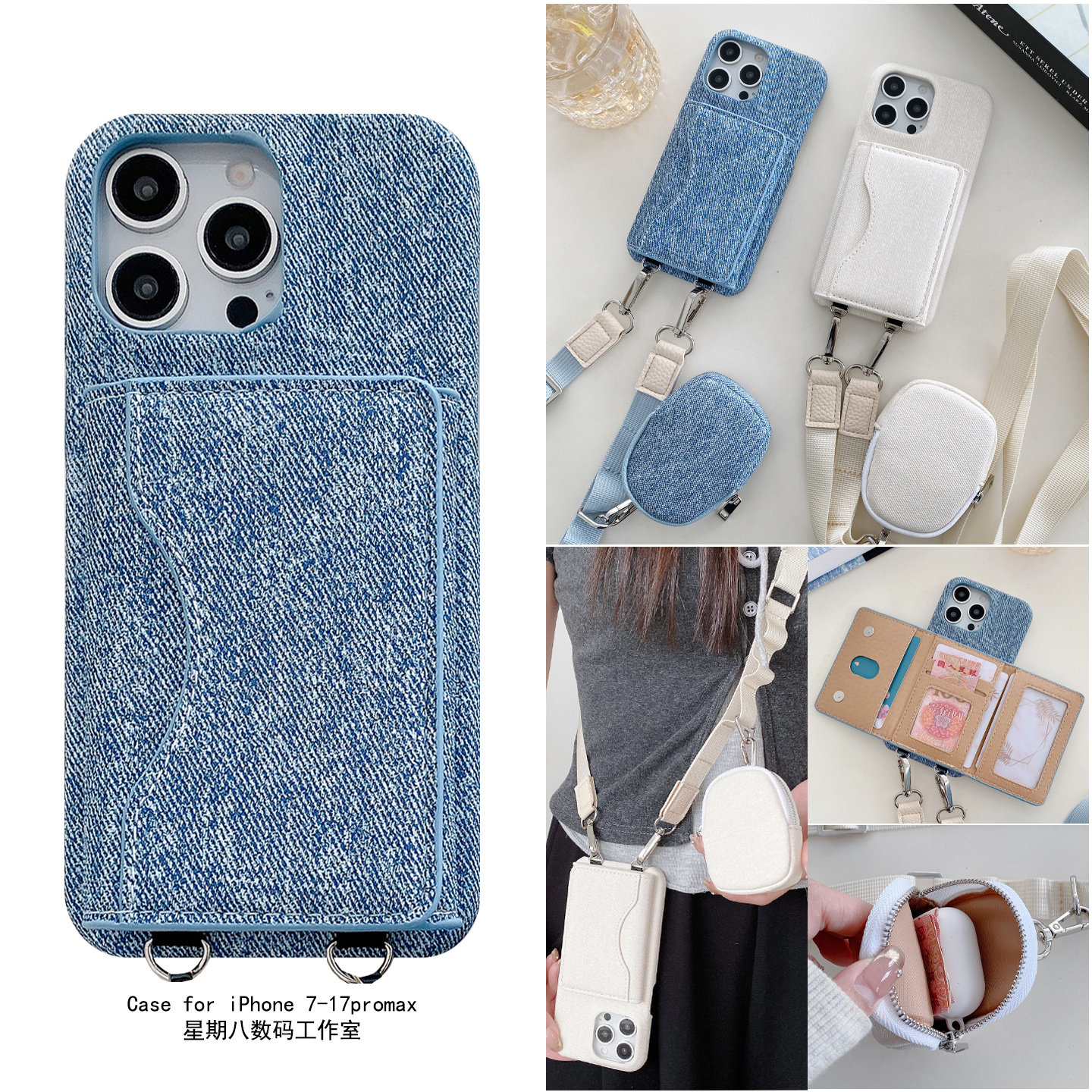 适用iPhone17牛仔零钱插卡包一体手机壳16promax带耳机套苹果15pro斜挎挂绳手机外壳14卡包支架保护套13女款