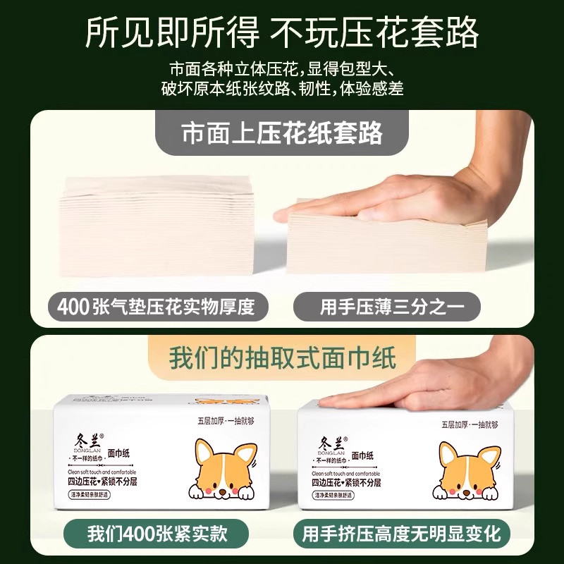 冬兰400张大包纸巾抽纸一分钱家用实惠装整箱餐巾纸卫生纸面巾纸