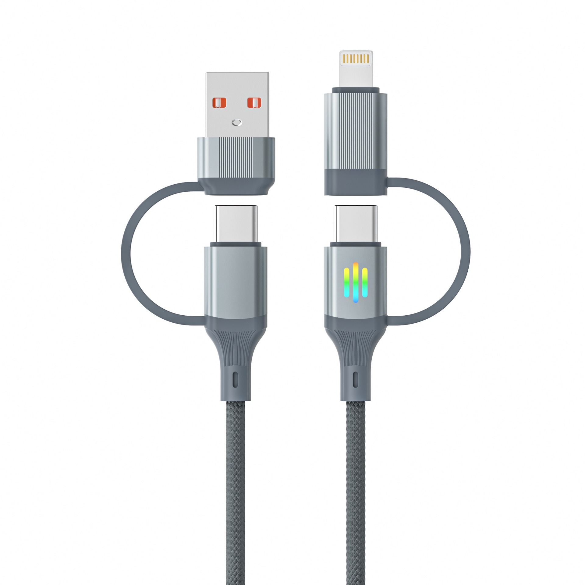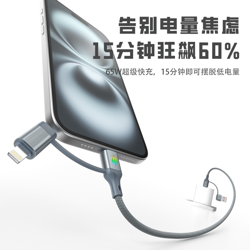 麦子七彩带灯四合一超级快充数据线定制logo适用苹果16充电线器iPhone14车载usb加长多头闪充手机通用充电线