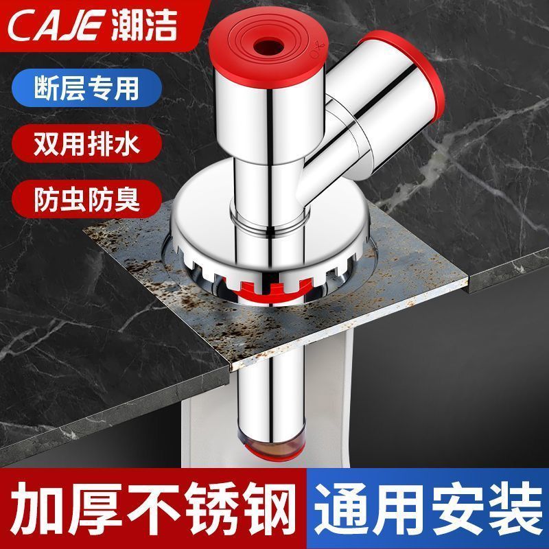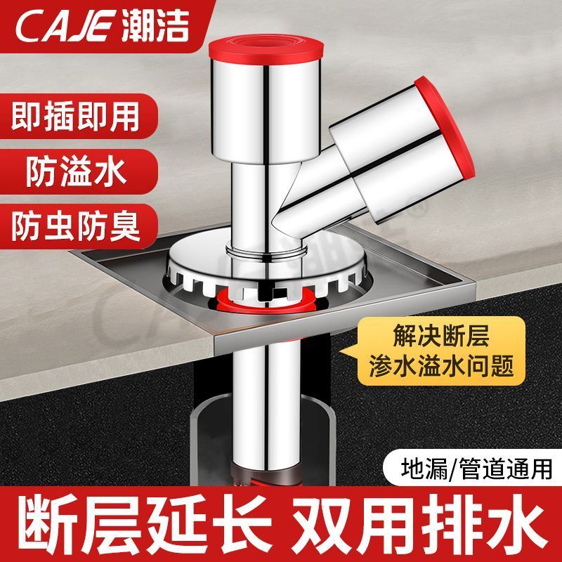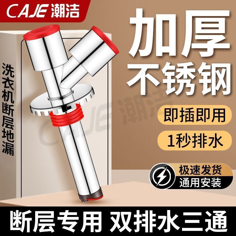 潮洁不锈钢地漏断层延长管洗衣机地漏下水管三通接头防臭防溢神器
