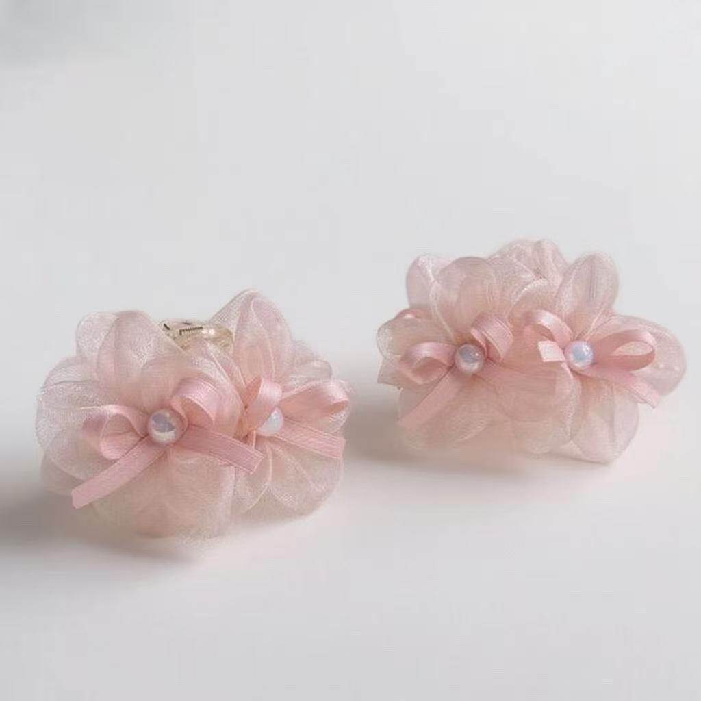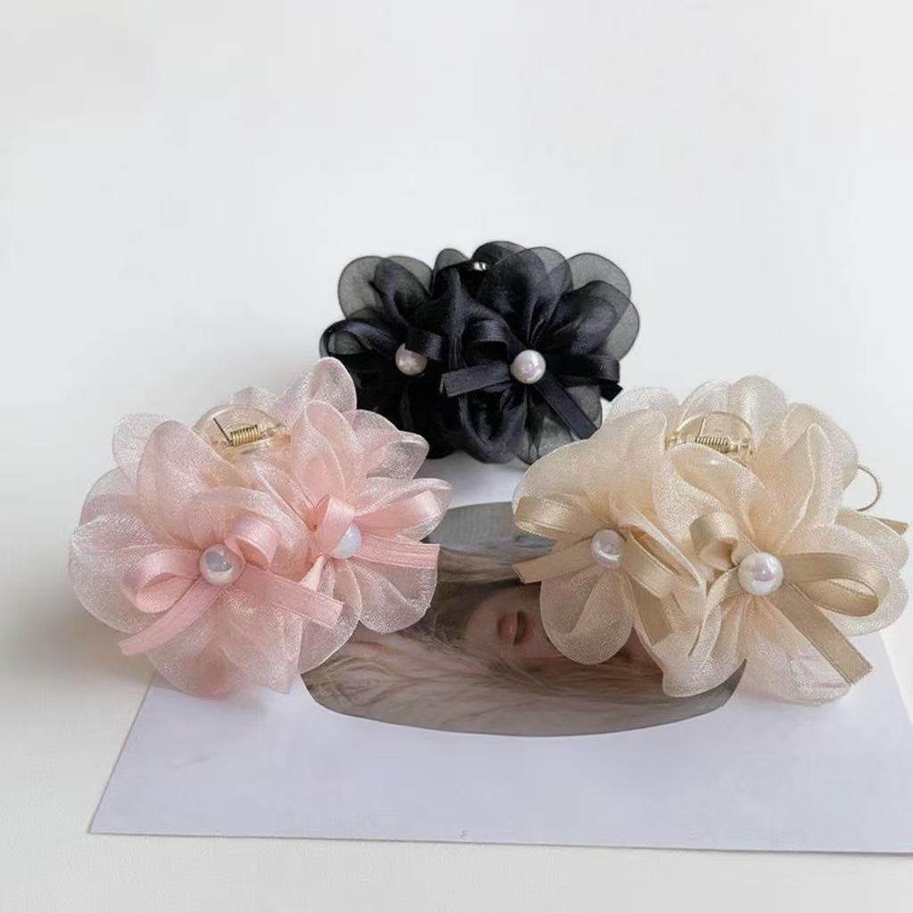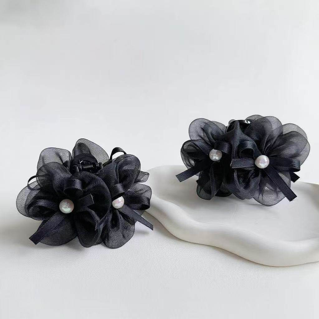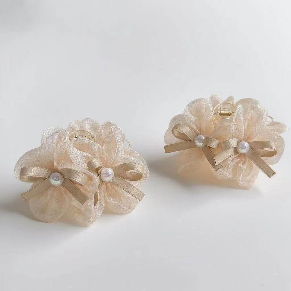 2025款轻奢气质高级感网纱花朵珠珠蝴蝶结碎发夹发饰7cm