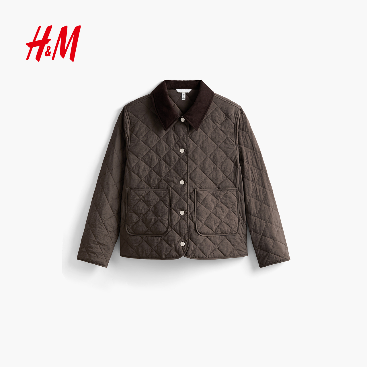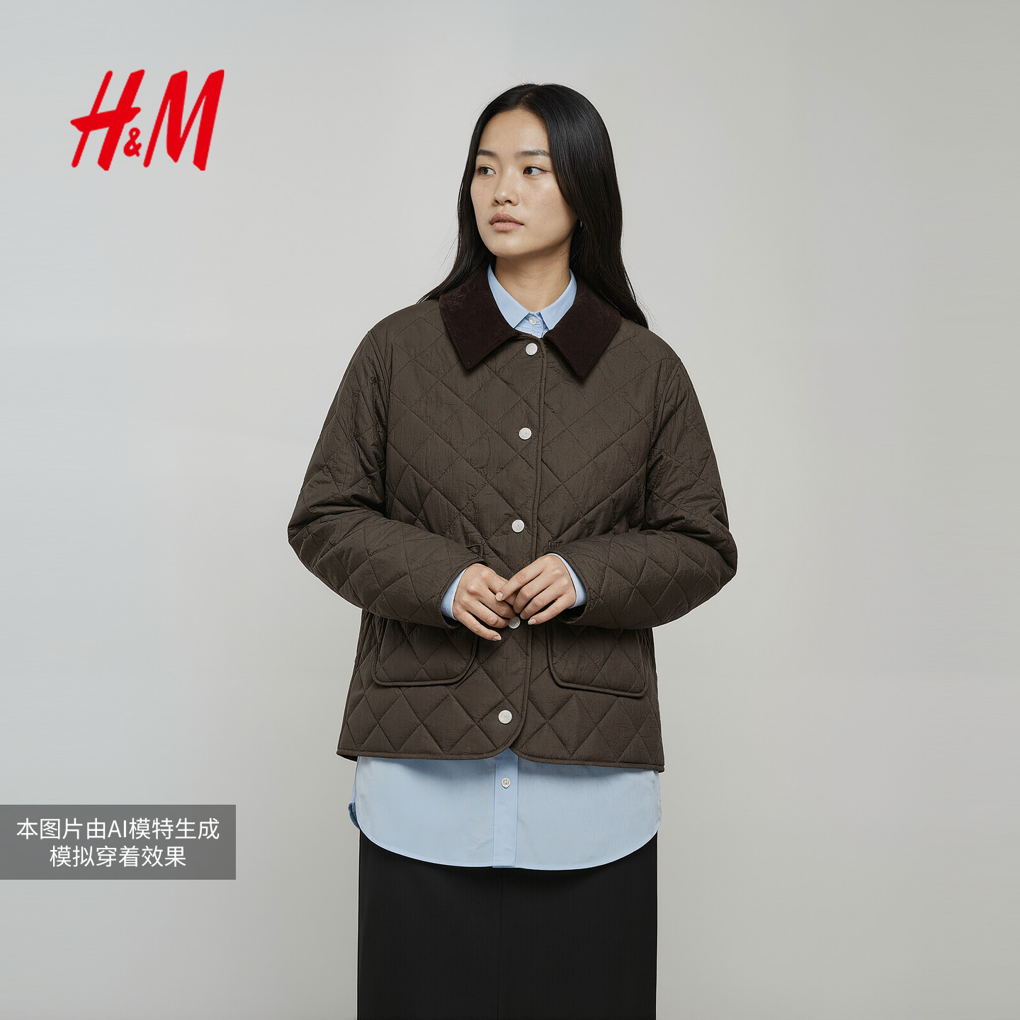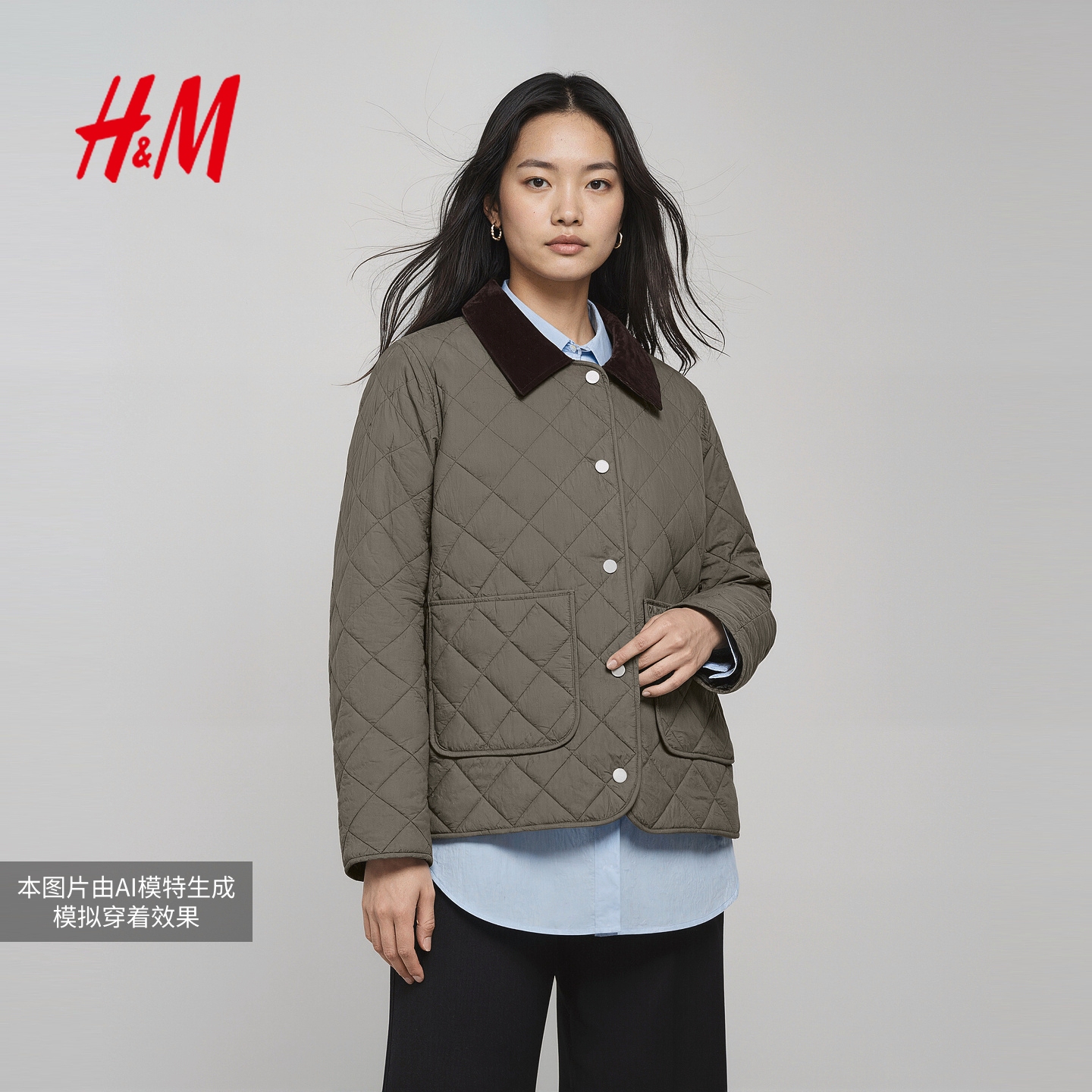 HM女装棉服25冬季新款冬装保暖灯芯绒领绗缝外套棉衣1000038
