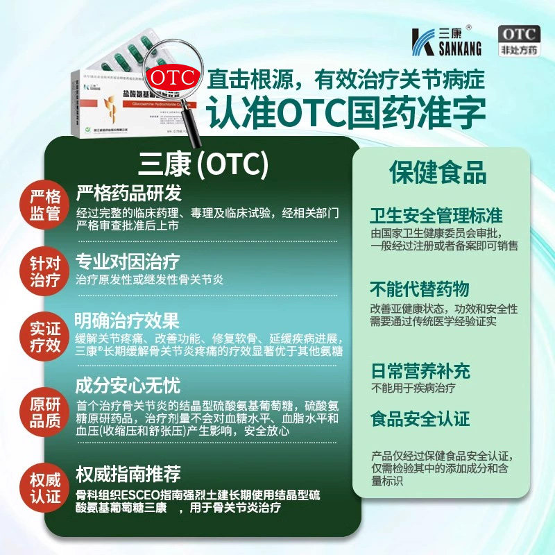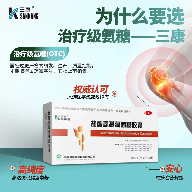 三康盐酸氨基葡萄糖胶囊20粒/盒类风湿性关节炎骨关节炎肌肉疼痛