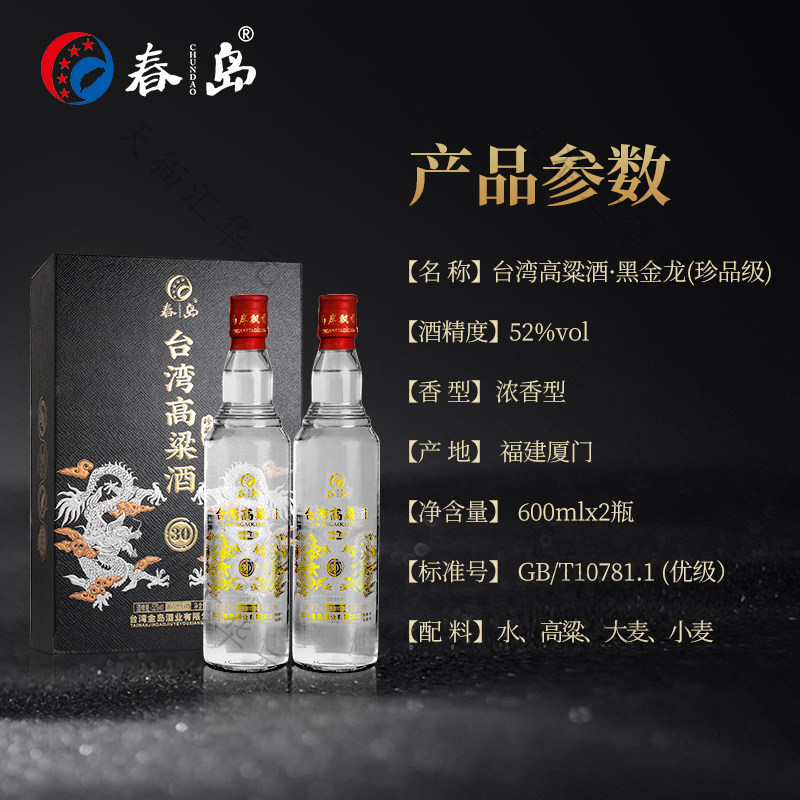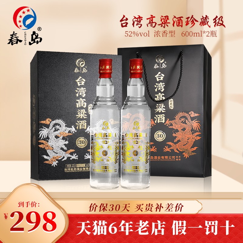 【龙年限定】春岛台湾高粱酒珍藏级浓香型白酒52度600ml*2瓶礼盒