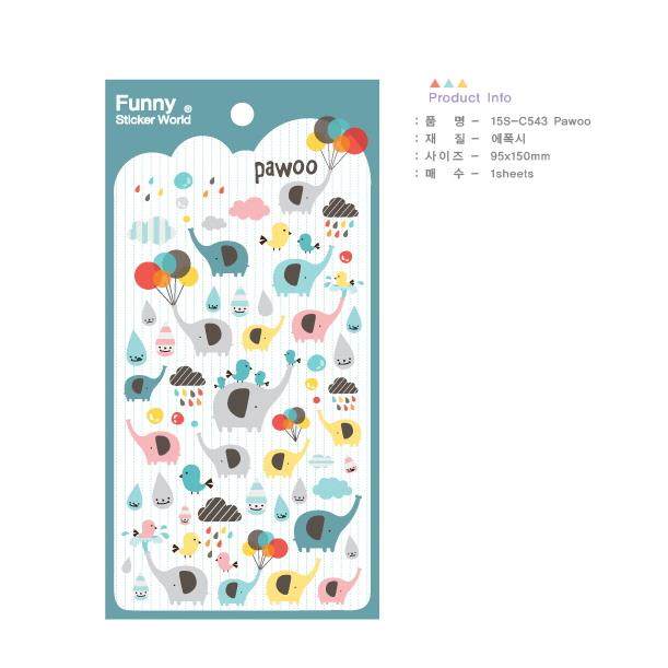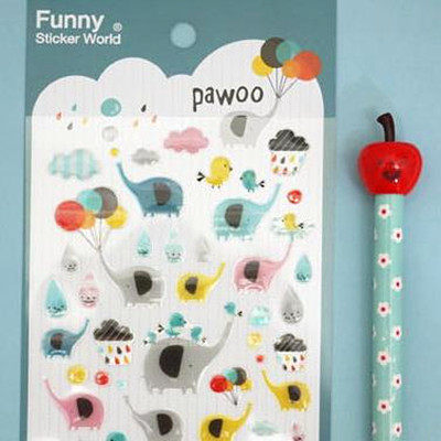 韩国funny贴纸 PAWOO 可爱小象天气滴胶手账素材diy手机装饰贴画