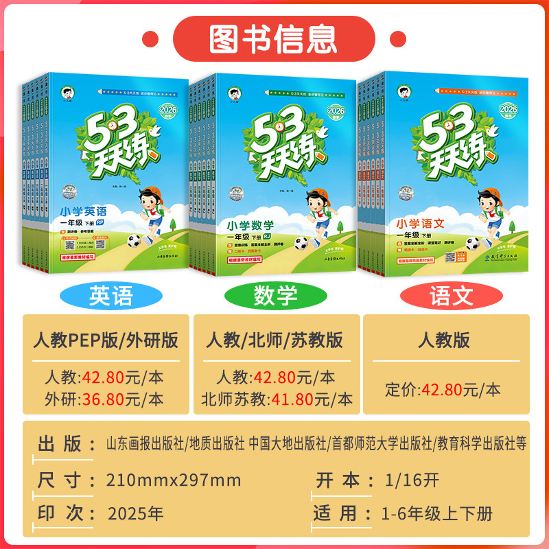 2026春版53天天练一年级二年级三四五六年级下册上册语文数学英语人教版苏教北师大外研西师冀教材小学生课本书5+3五三5.3同步练习