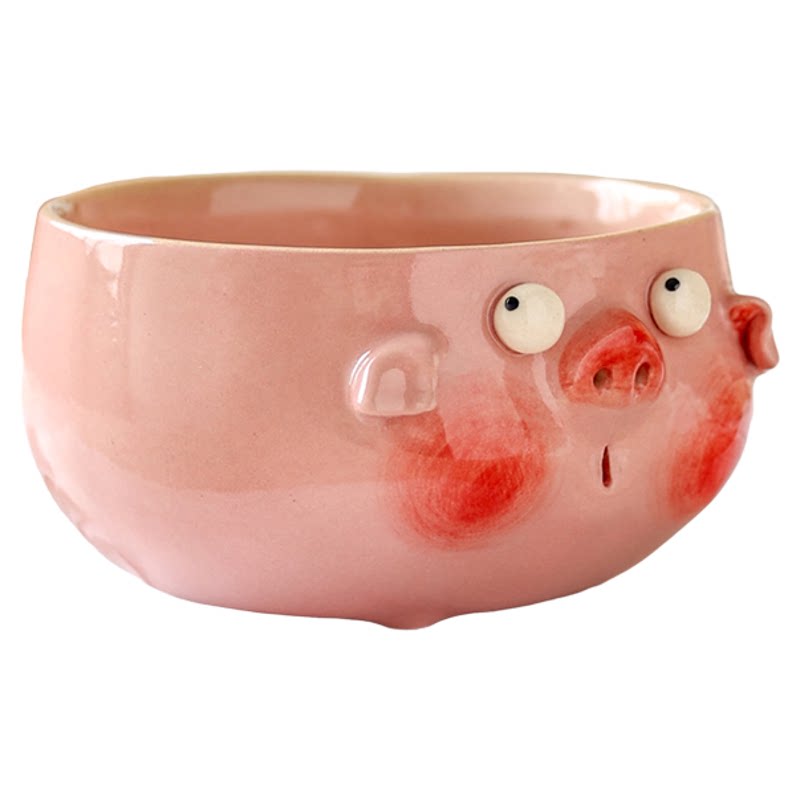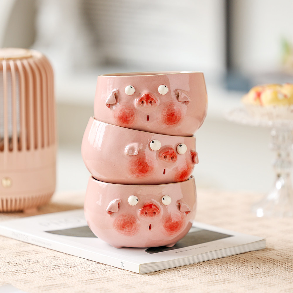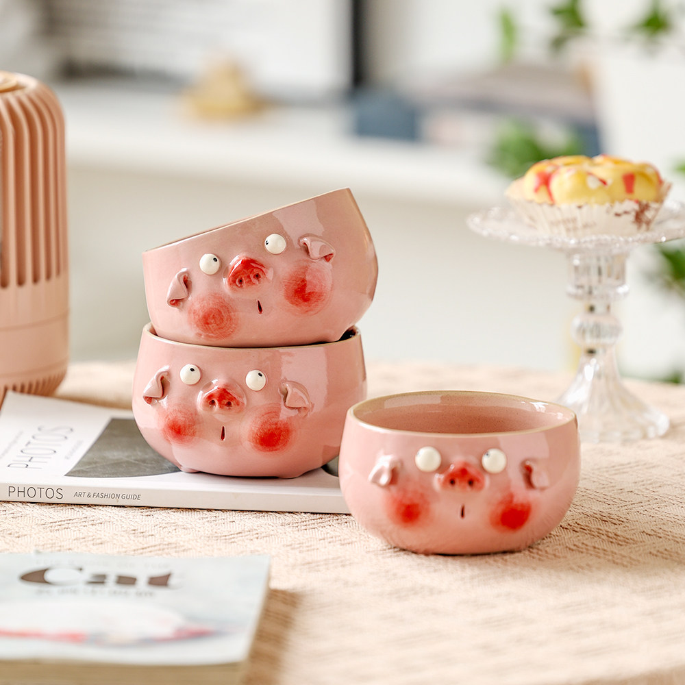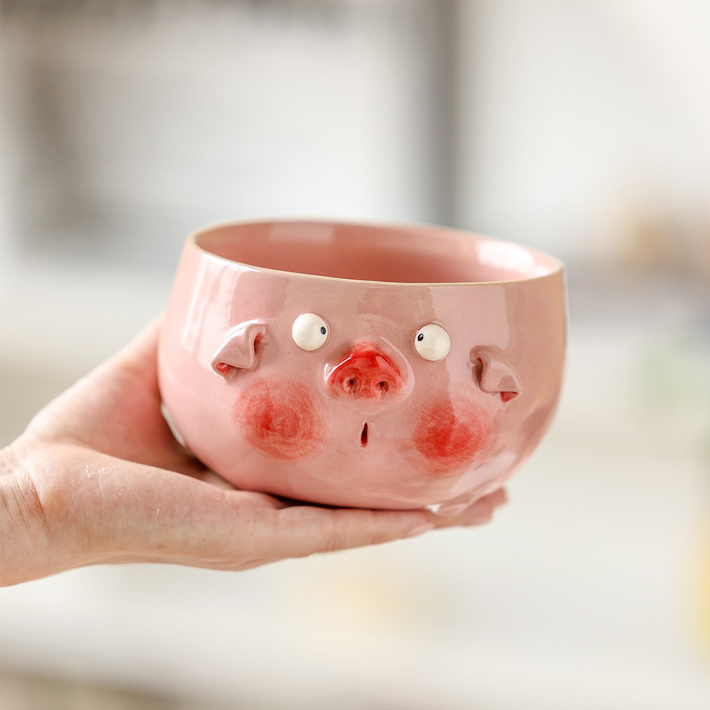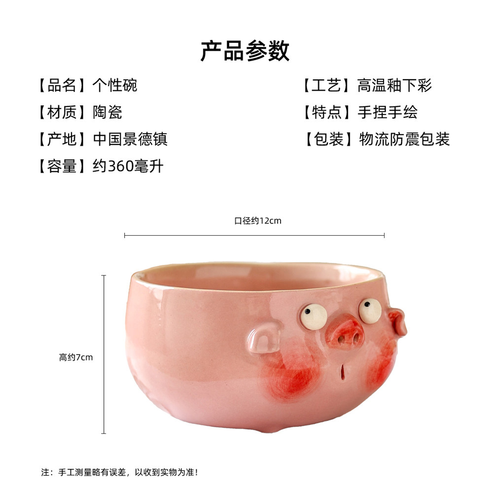 景德镇陶瓷可爱猪猪餐饮具酸奶碗面饭碗手工手绘釉下彩粉色小清新