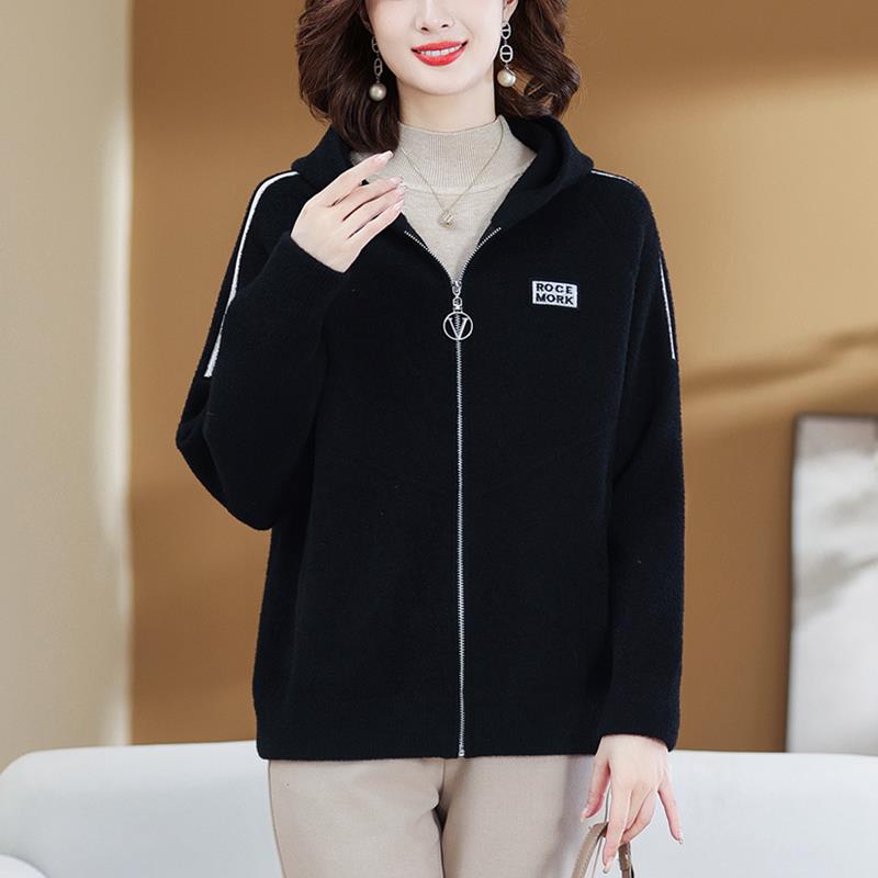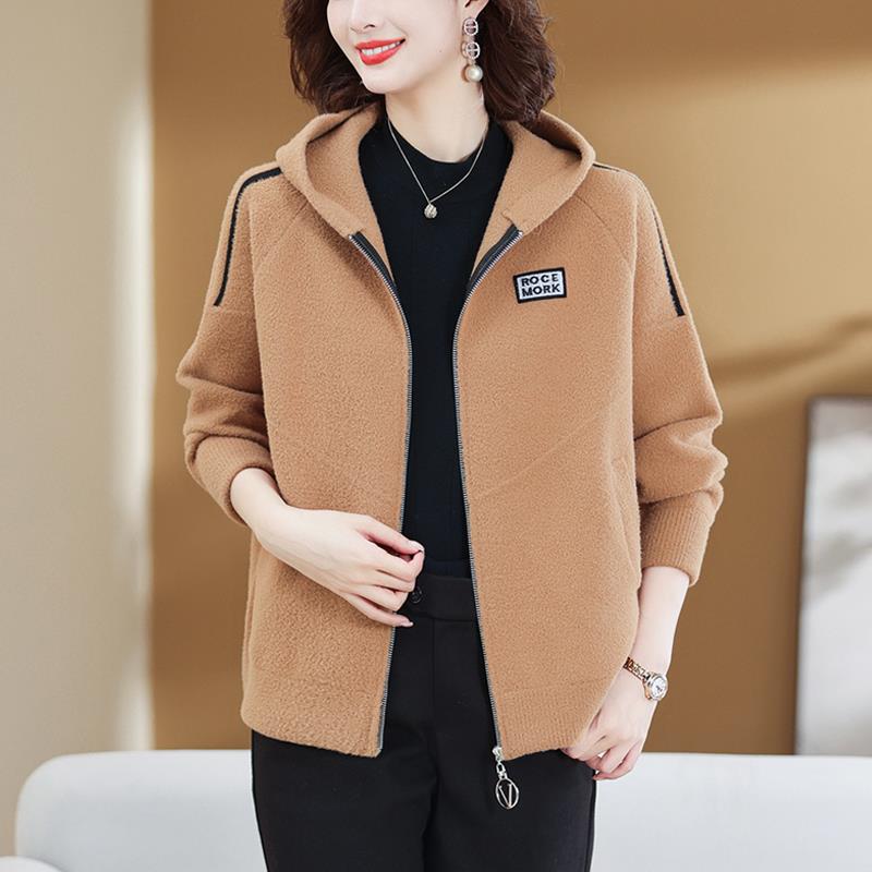 时尚休闲连帽拉链女士毛呢外套秋冬新款中年妈妈显瘦双面羊绒大衣
