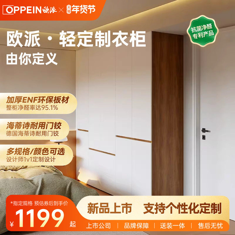 欧派轻定制衣柜家用简约整体卧室平开门衣柜定制分段式衣橱定做