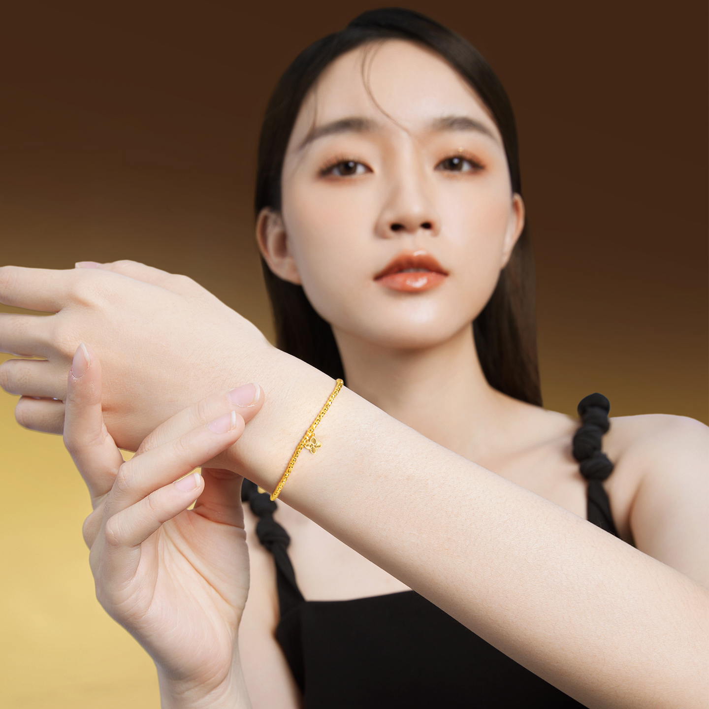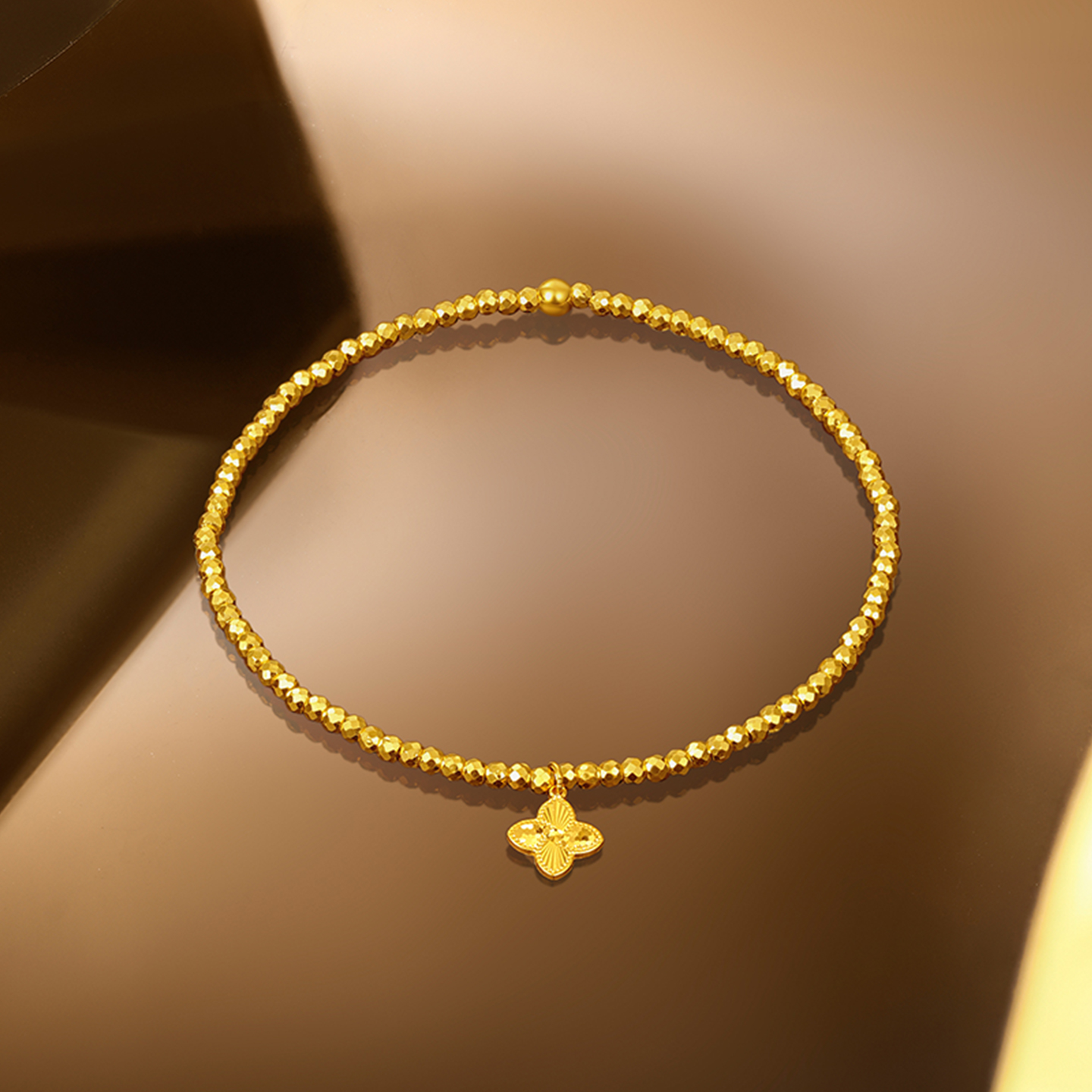 周六福黄金5G计价足金首饰爆闪蹦迪珠碎碎金四叶草手串节日礼物