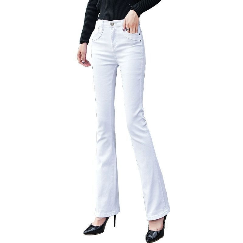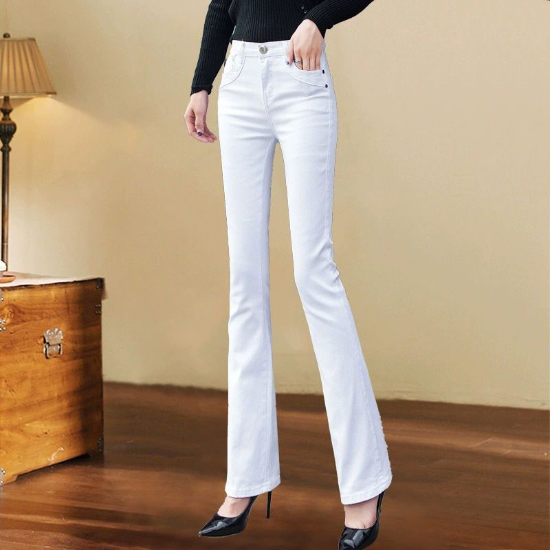高品质2025秋冬加绒微喇叭牛仔裤女士腰弹力显瘦修身大码百搭裤子