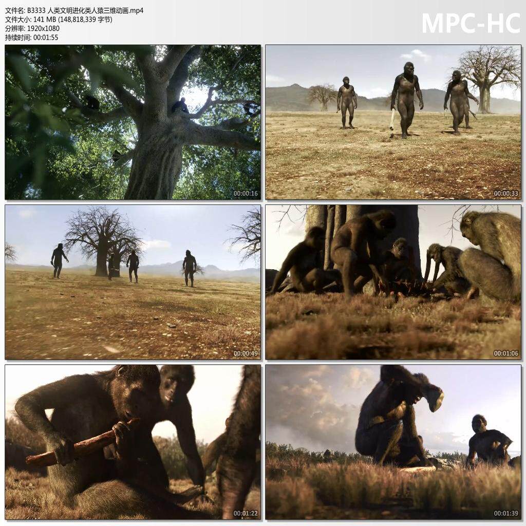 人类文明进化类人猿三维动画 高清短视频剪辑素材