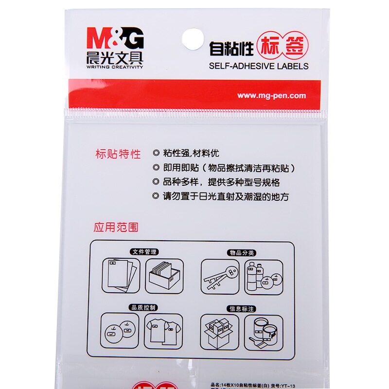 1包10张 晨光 YT13 自粘性标签 纯白色 不干胶分类姓名记号贴纸