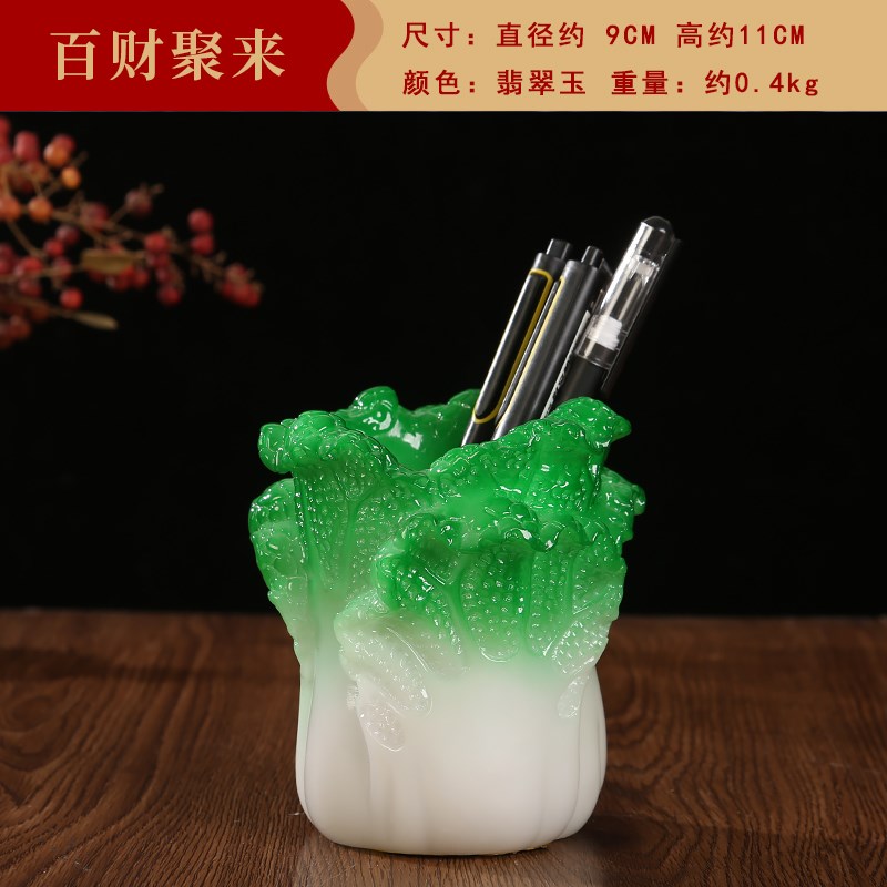 百财聚来笔筒创意白菜摆件办公室桌面收纳学生用品送教师节礼物