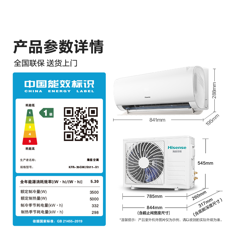 【政府补贴20%】海信新风空调X5大1.5匹国补一级能效以旧换新官旗
