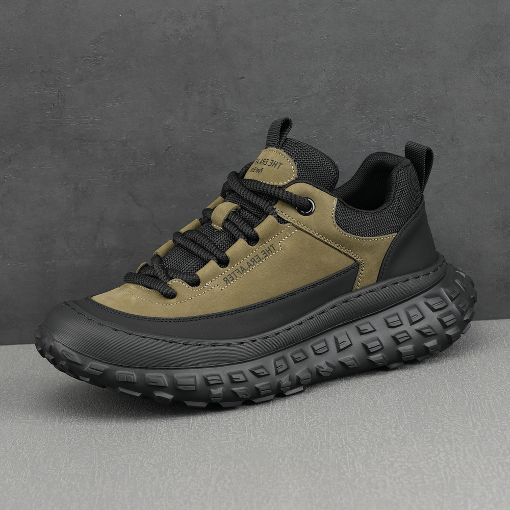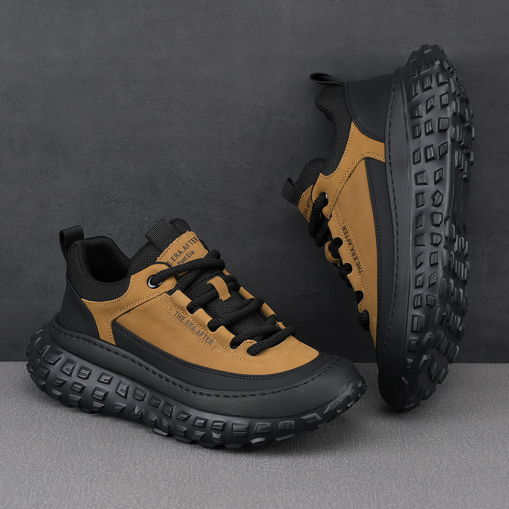 2024秋季新款潮流真皮拼色厚底防滑登山休闲鞋青年百搭流行男鞋子