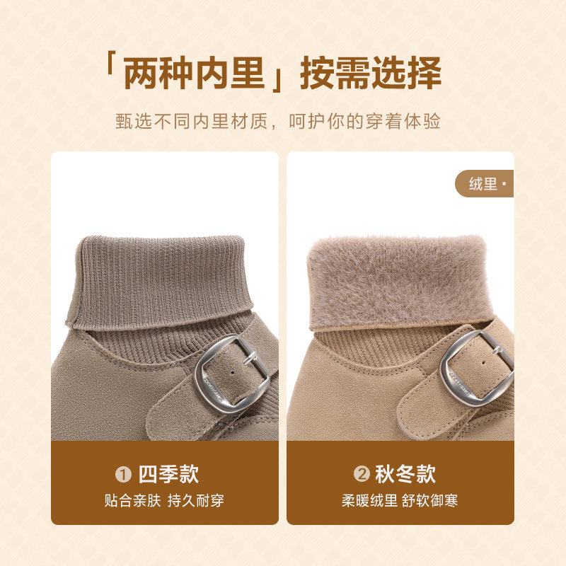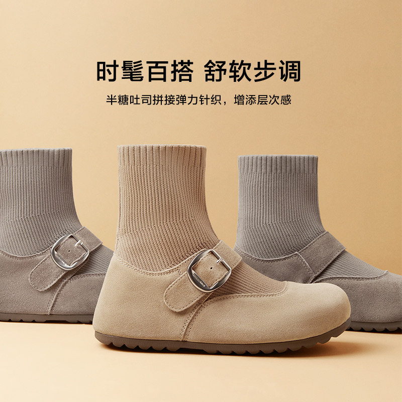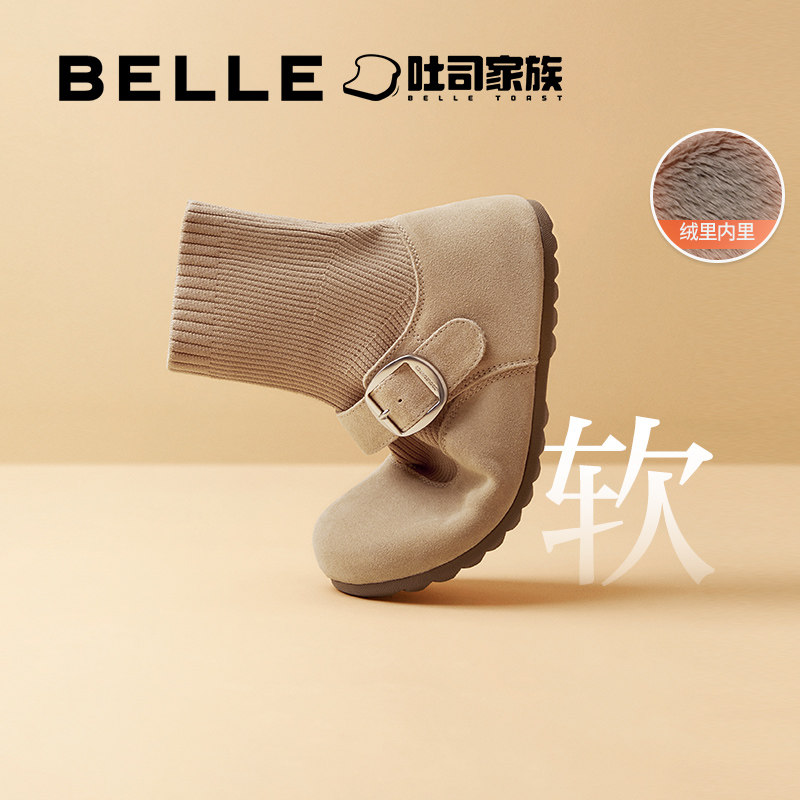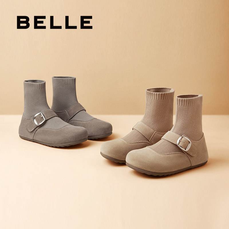 百丽吐司鞋半糖弹力袜靴女勃肯鞋子冬新加绒袜子鞋短靴D2B1DDD4