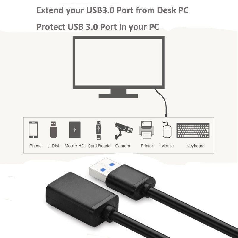 USB 3.0 Extension Cable Male to Female 0.5m 1m 2m Black Sup