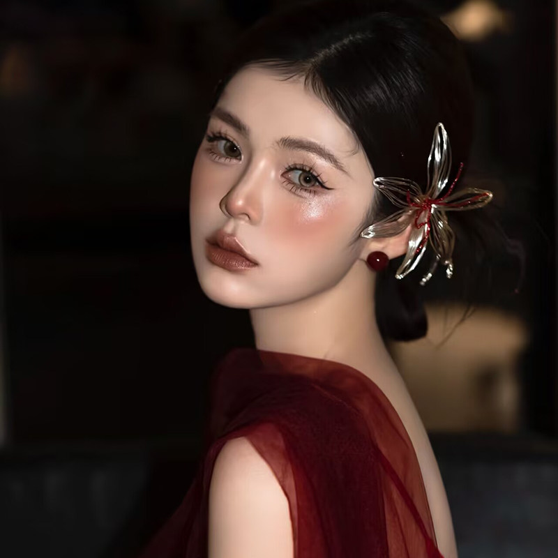 新中式新娘头饰高级感红色花朵发簪高级感发饰结婚旗袍礼服配饰品