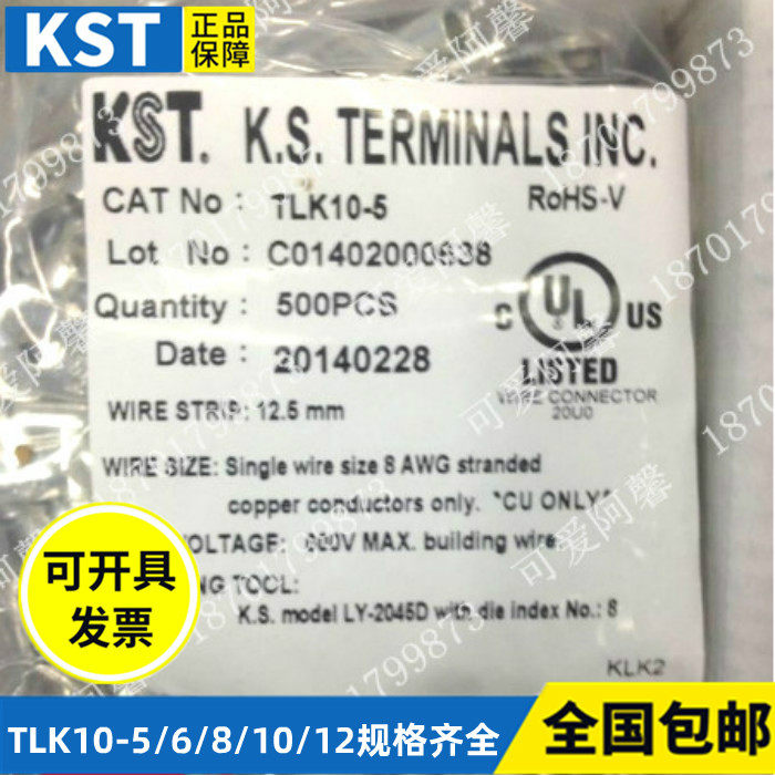 健和兴KST短铜鼻K.S TLK10-4/5/6/8/10/12无窥口镀锡紫铜线鼻UL