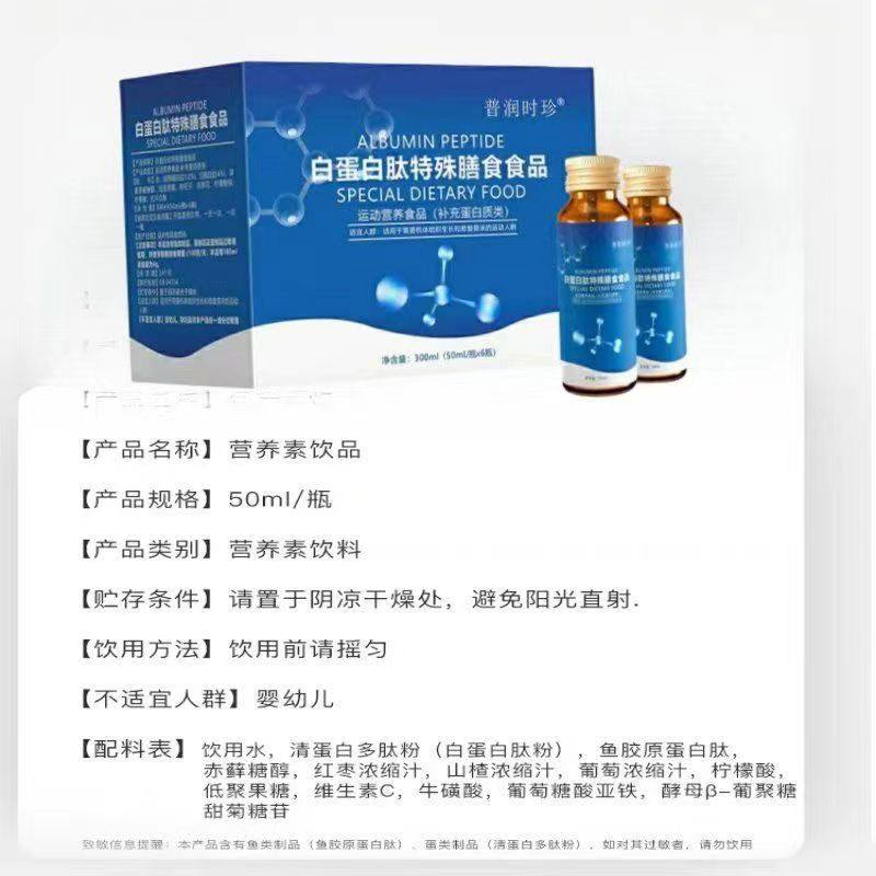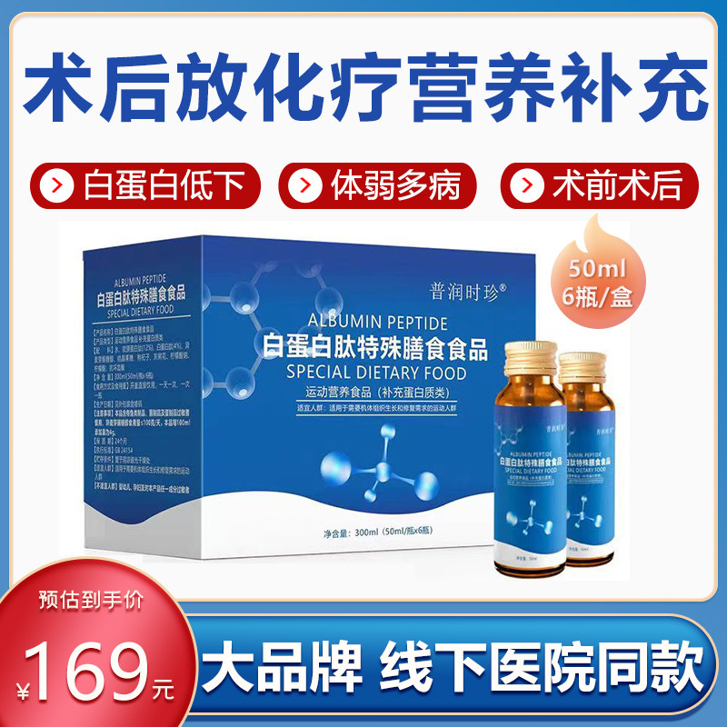 普润时珍白蛋白肽特殊膳食食品50ml*6瓶术后放化疗营养补充正品