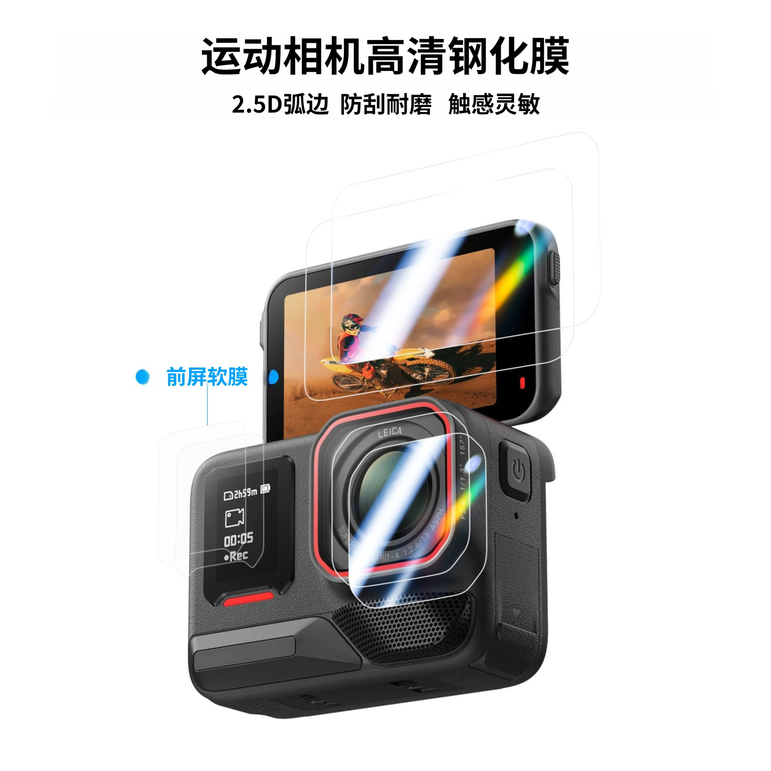 影石insta360 AcePro2硅胶保护套钢化膜镜头盖贴膜收纳包防丢绳