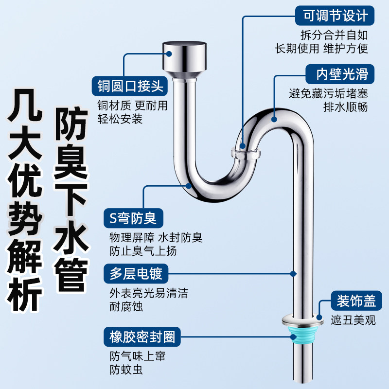 壁挂式小便器池下水管排水管 s弯防臭配件小便斗下水排尿管防臭盖