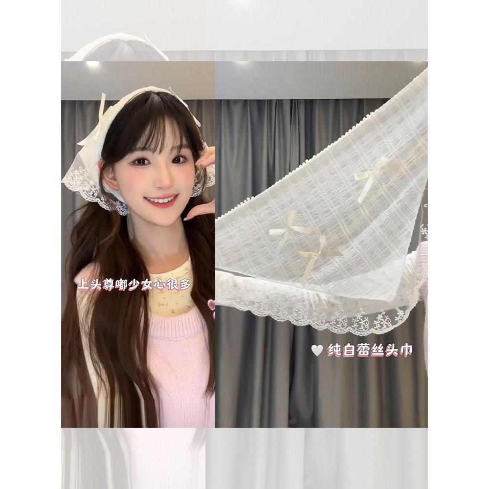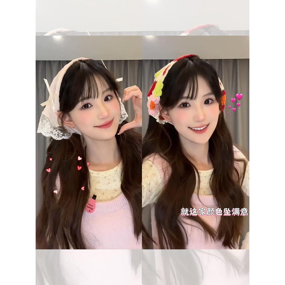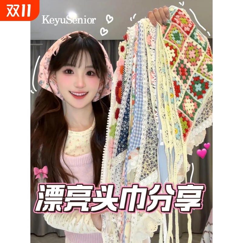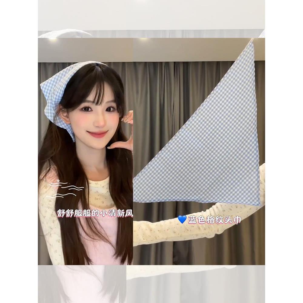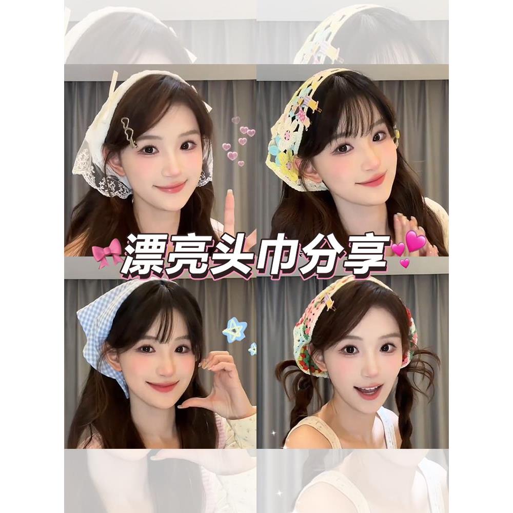 夏季头巾发带丝巾绑发发箍女田园风针织多巴胺法式海边三角巾头饰