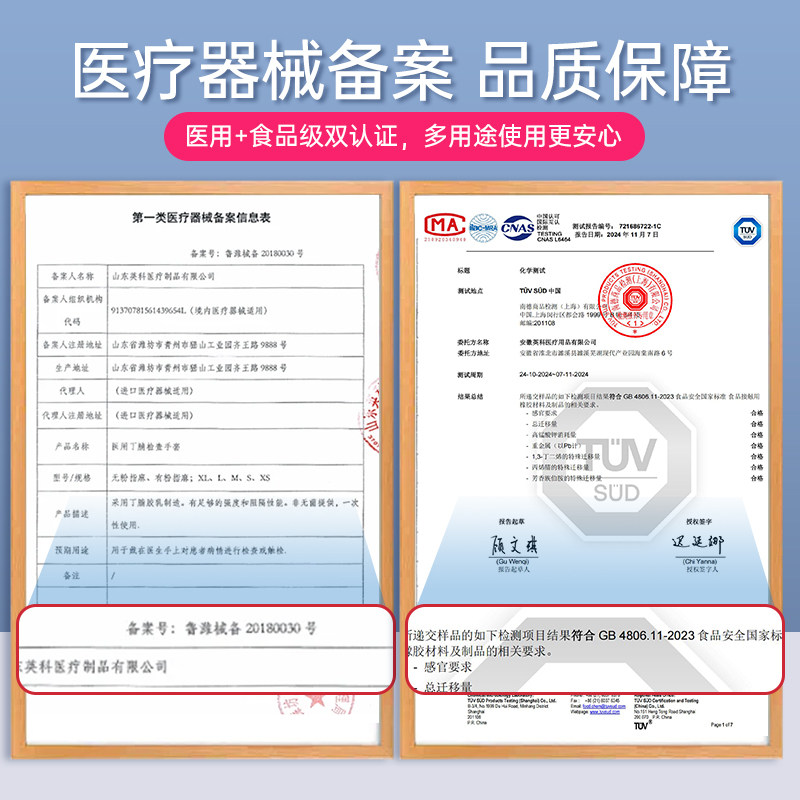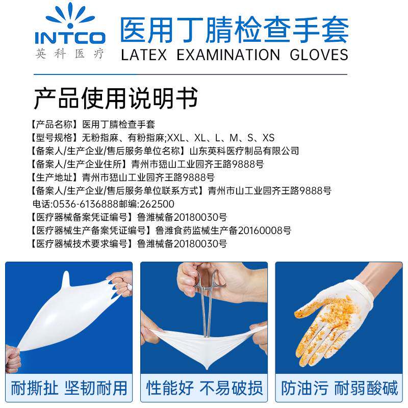 英科医用手套一次性丁腈加厚医疗外科手术检查食品级专用橡胶乳胶