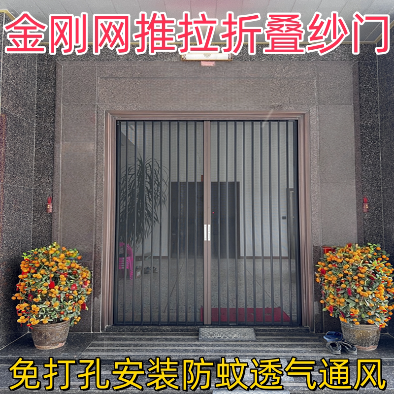防虫隔断门折叠门铝合金带锁防盗门防蚊金刚网纱窗门铝板隐形纱窗
