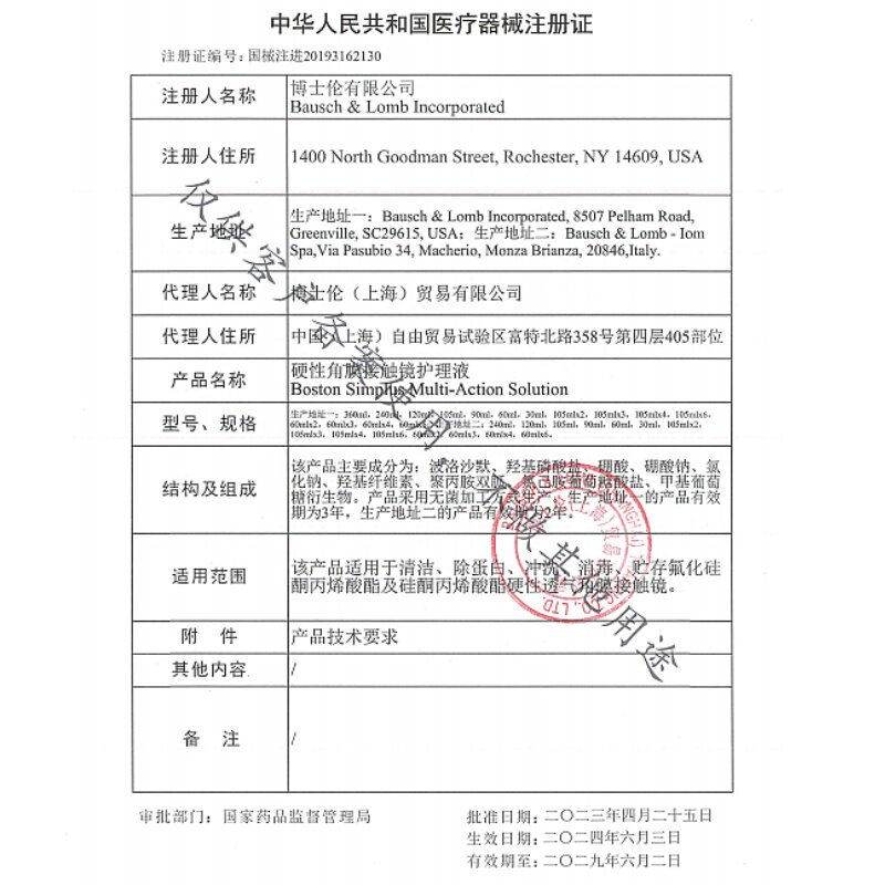 博视顿博士伦新洁护理液120ml硬性角膜接触镜OK镜隐形眼镜润眼液