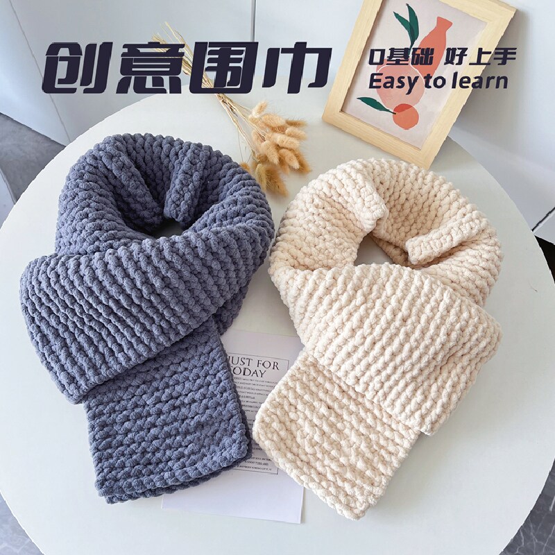 小熊围巾编织材料包自织毛线手工diy粗毛线团送男女友礼物冰条线