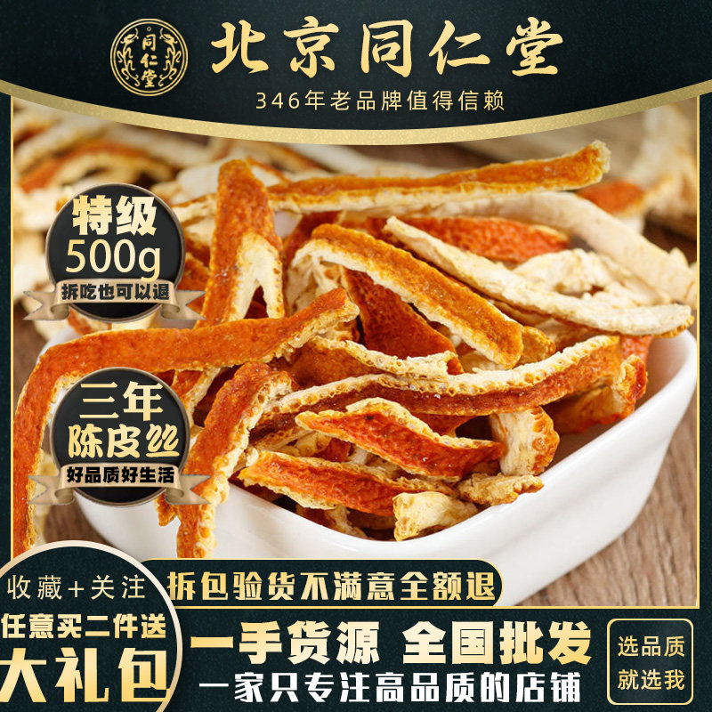 同仁堂正品特级陈皮3三年新会陈皮粉 干橘皮泡水回甘500g包邮泡茶