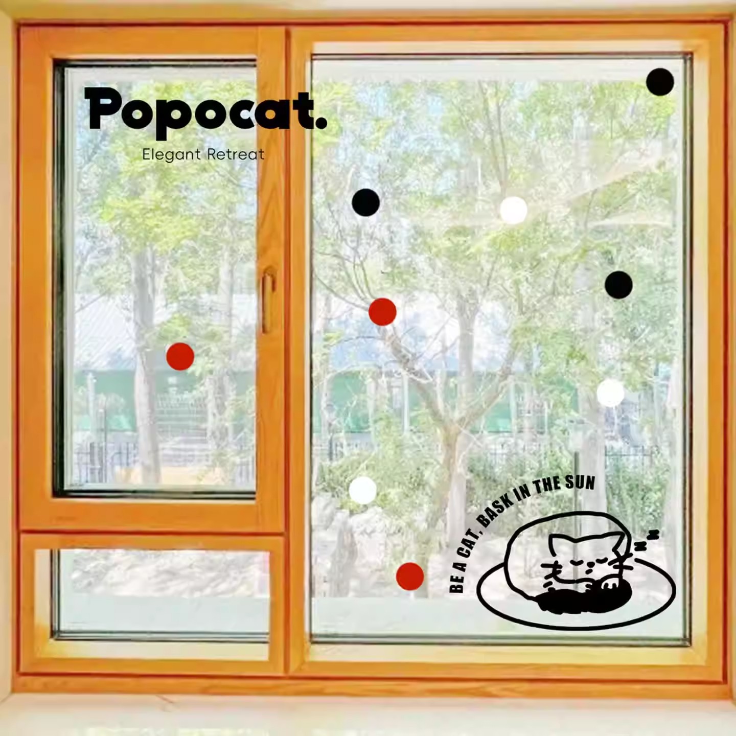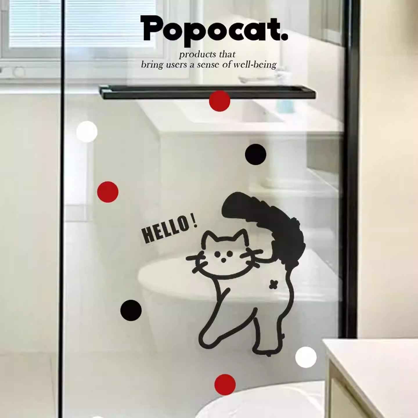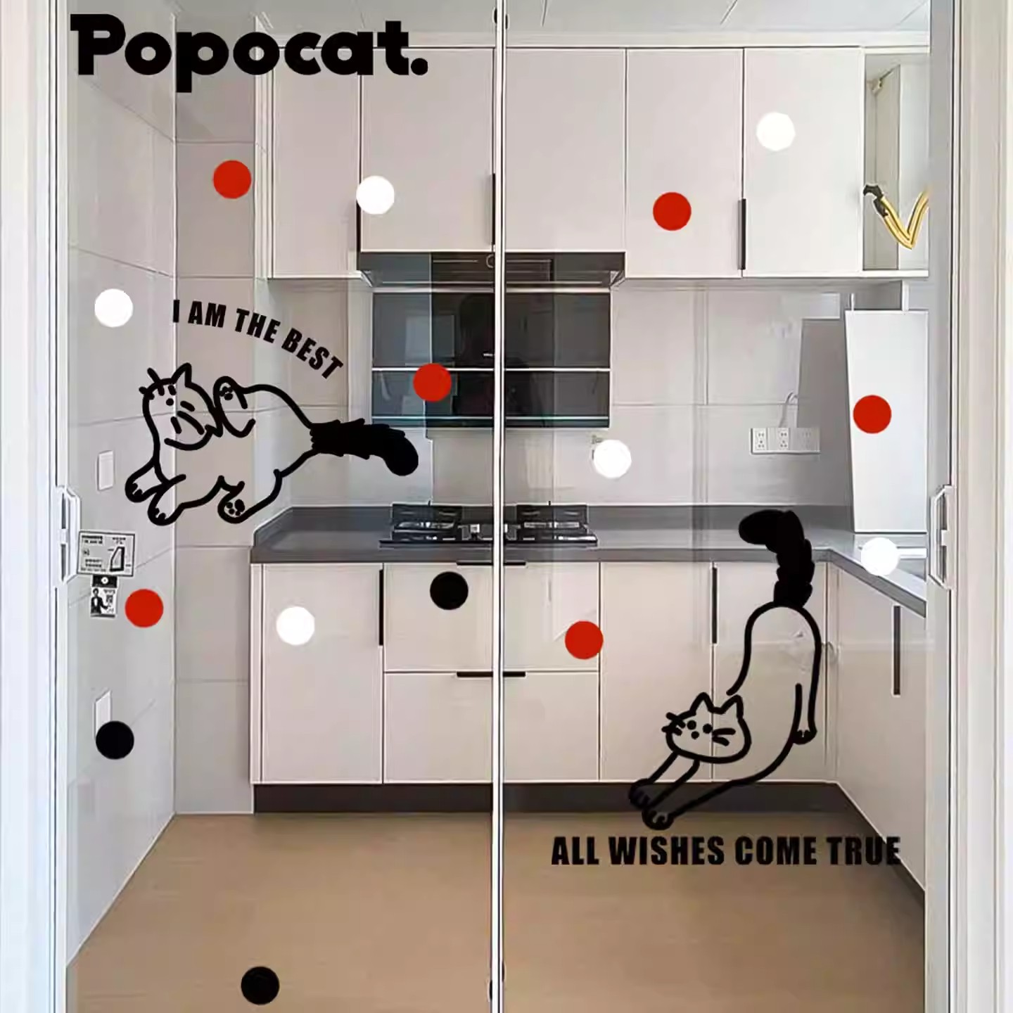 创意波点小猫玻璃贴纸店铺橱窗装饰静电贴防撞厨房门浴室瓷砖贴画