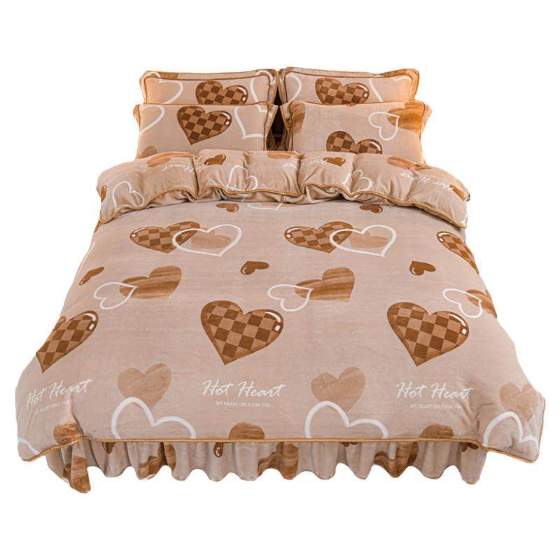 新款牛奶绒四件套冬季加厚保暖金貂绒被套床上用品法兰绒床单裙式