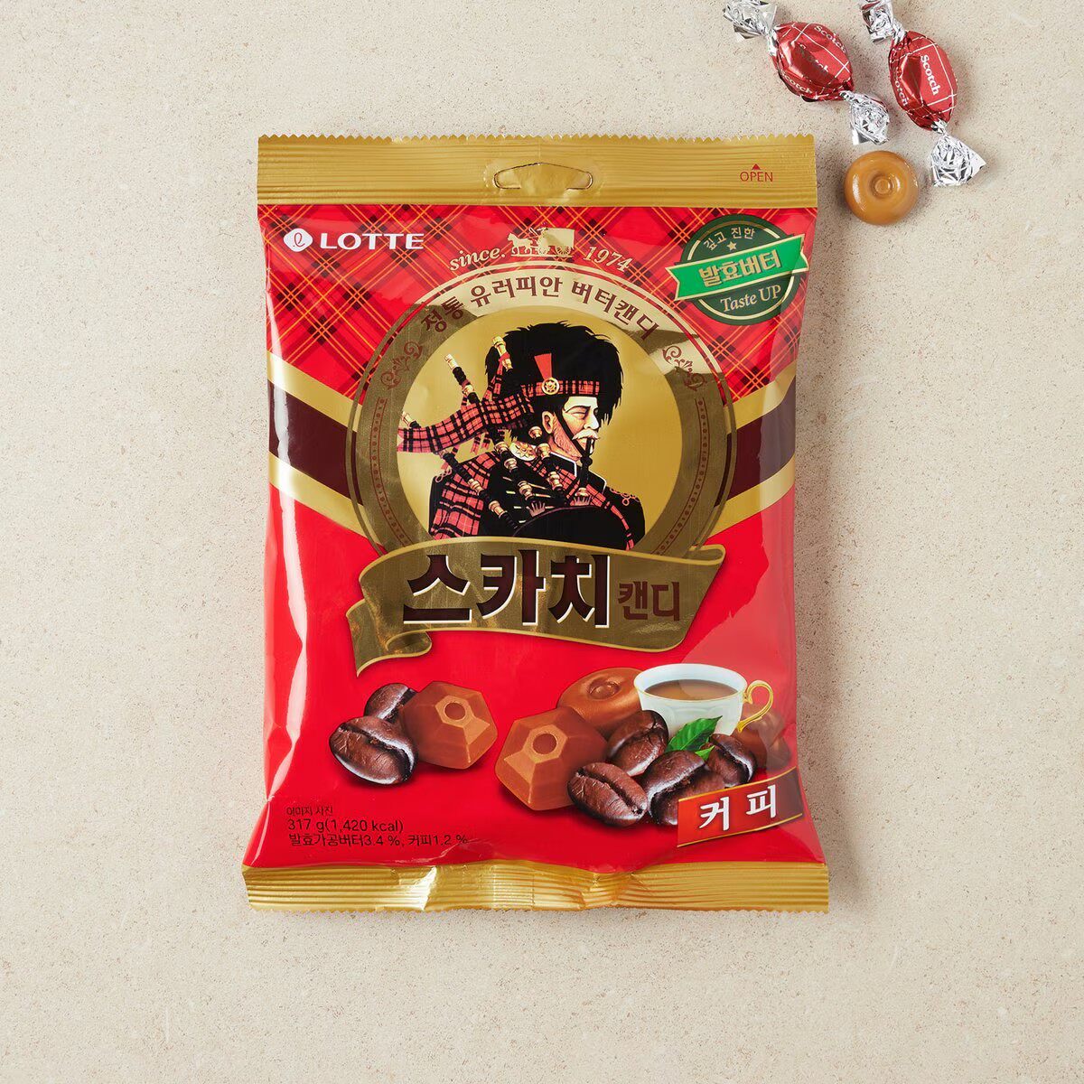 韩国进口黄油水果味乐天独立包装好吃休闲办公室苏格兰咖啡糖157g