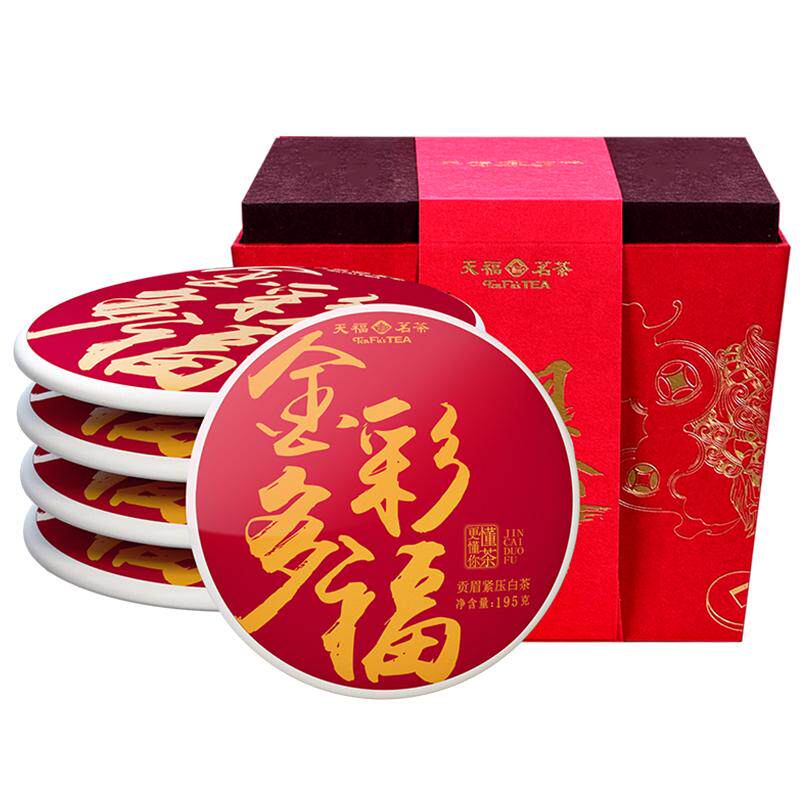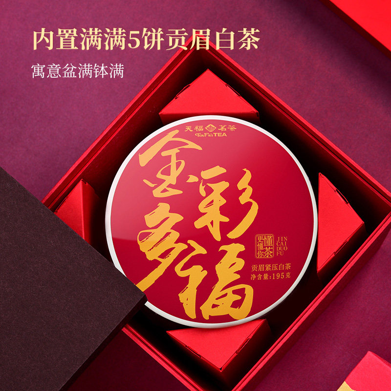 天福茗茶 贡眉白茶饼 福鼎白茶 5年原料茶饼195g*5