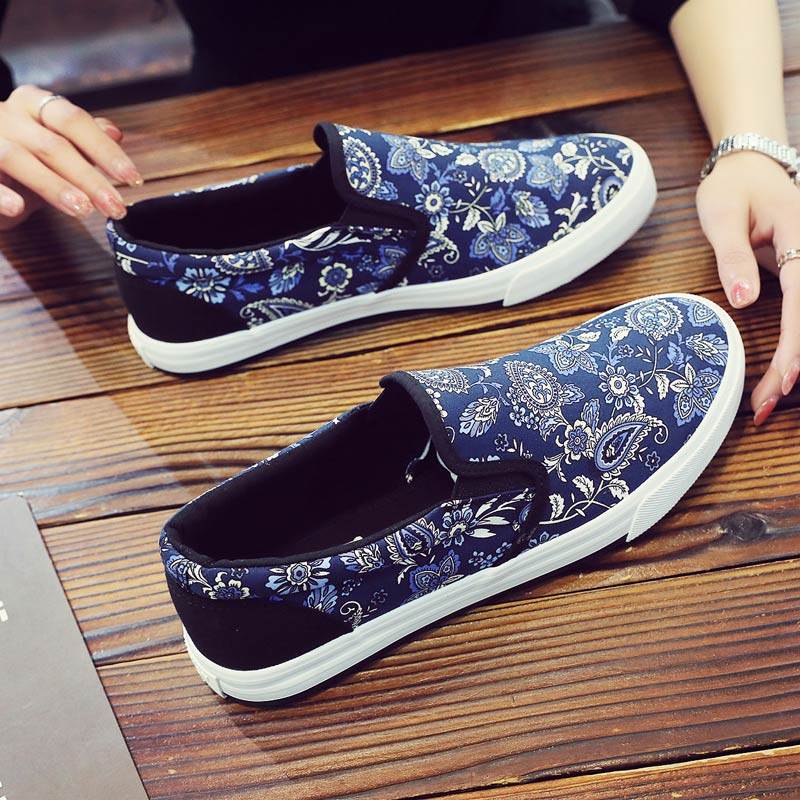 韩版帆布鞋男鞋青年流行圆头一脚蹬套脚低帮平底板鞋透气懒人潮鞋