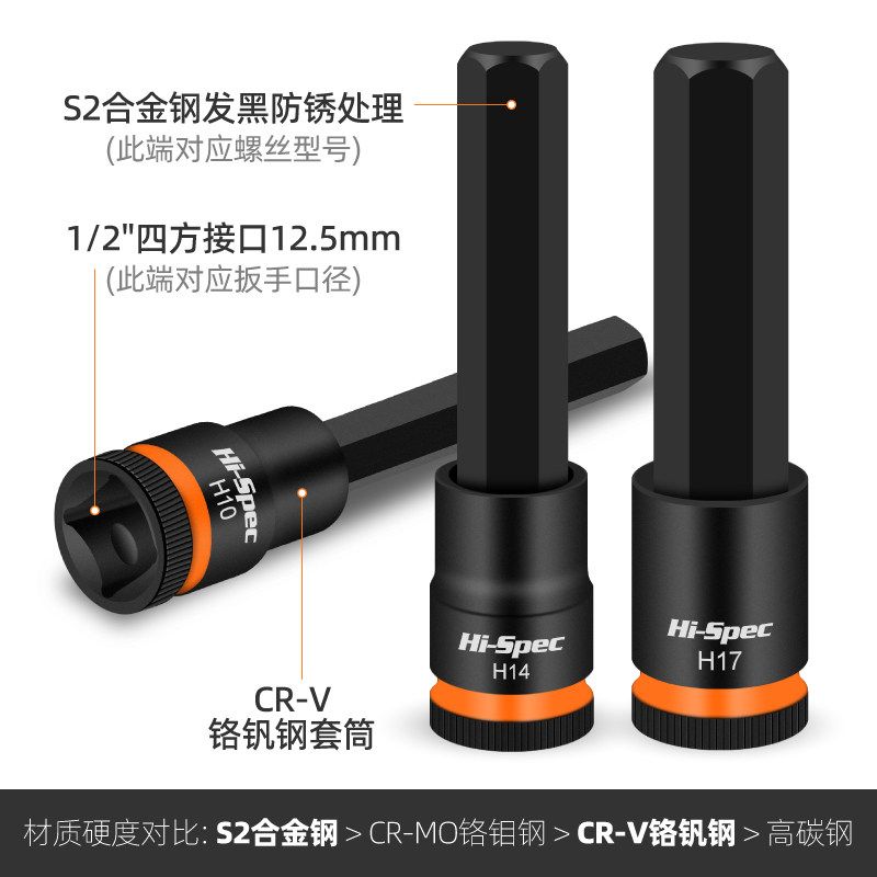 希孟内六角加长扳手套装 批头套筒汽修工具内6方电动大飞旋具组套
