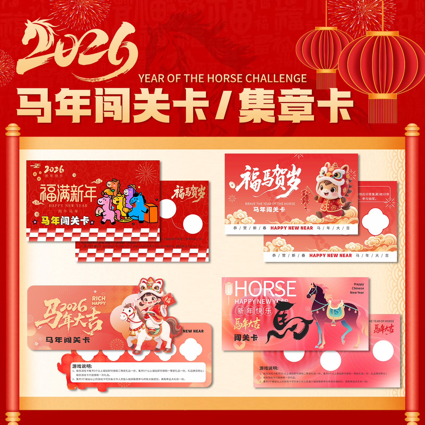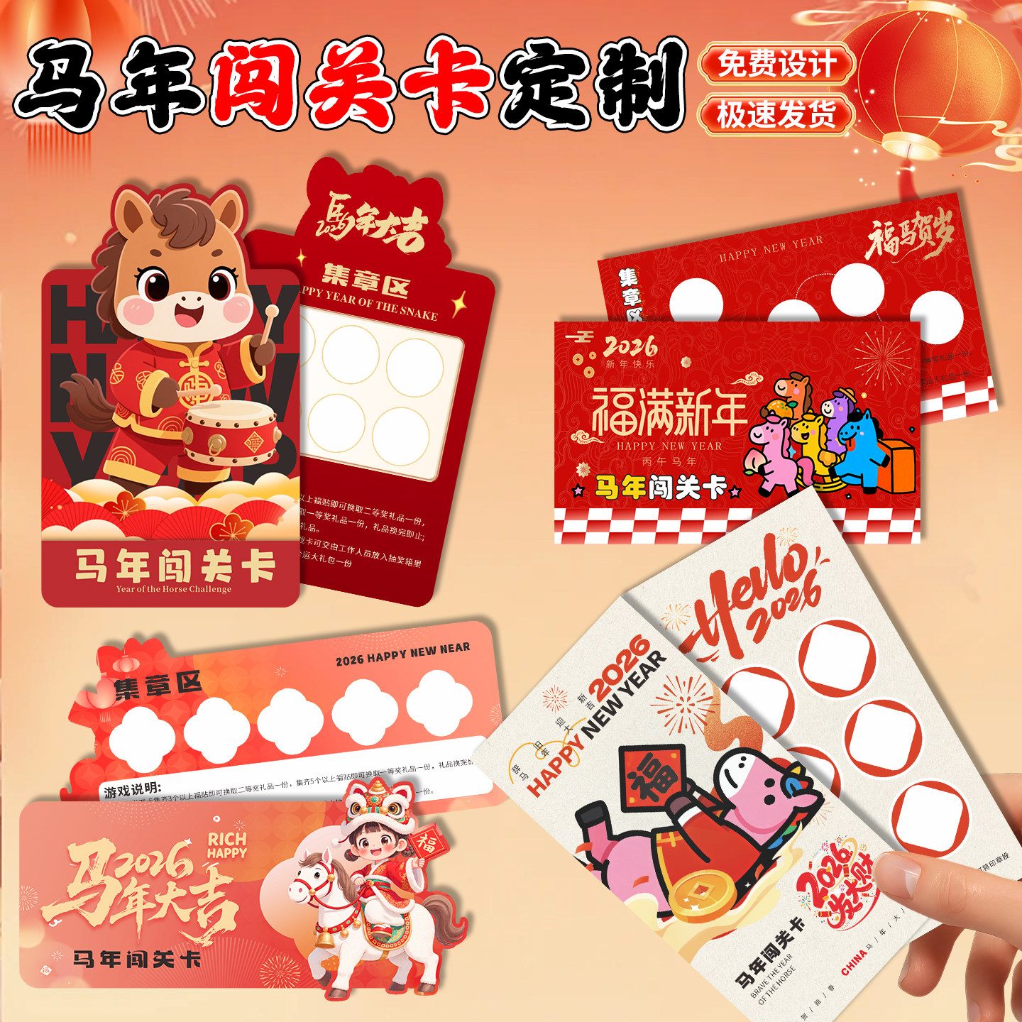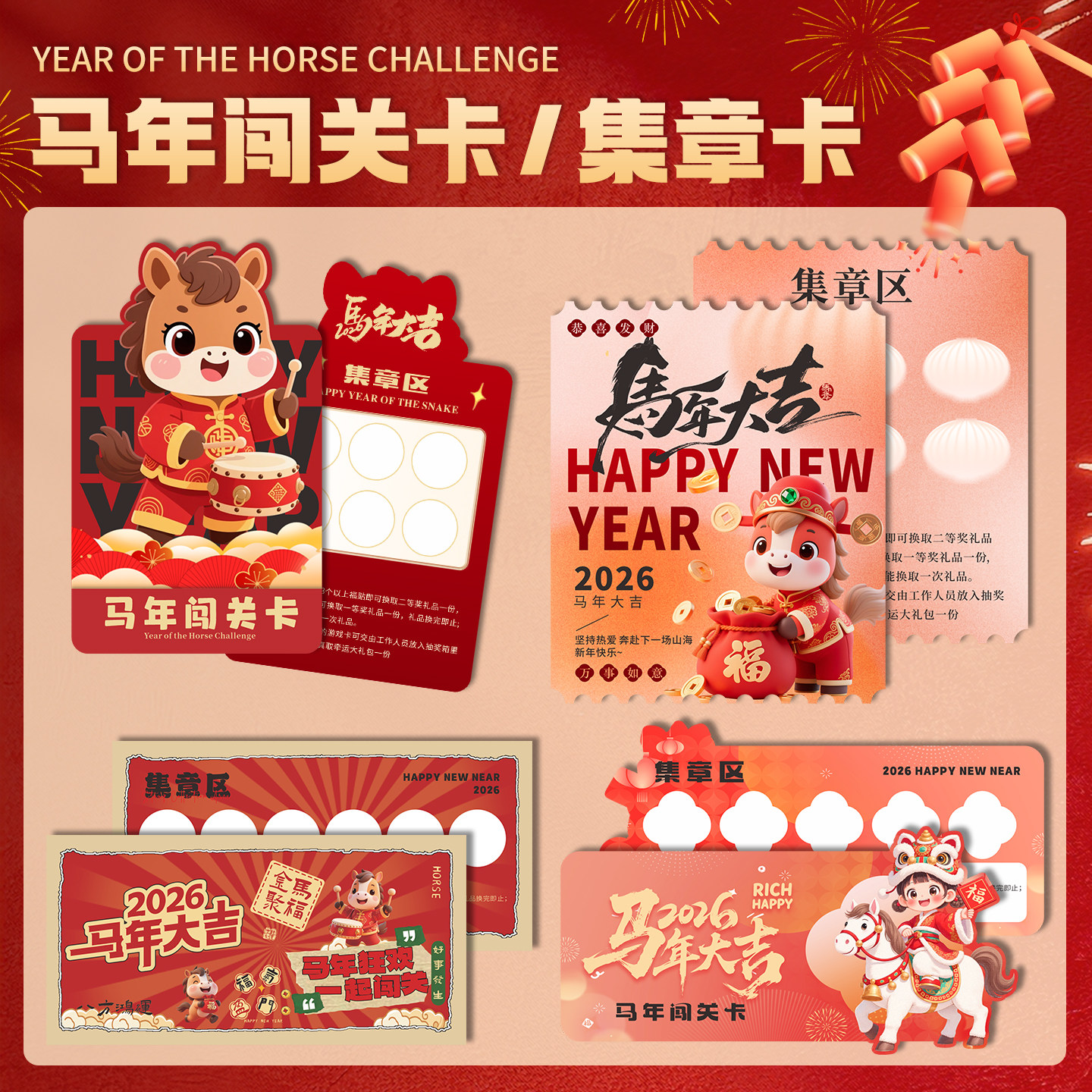 2026马年集章卡片定制新年闯关卡集点卡通关卡片打卡定做设计任务卡印章宣传活动游戏道具游园会趣味集会