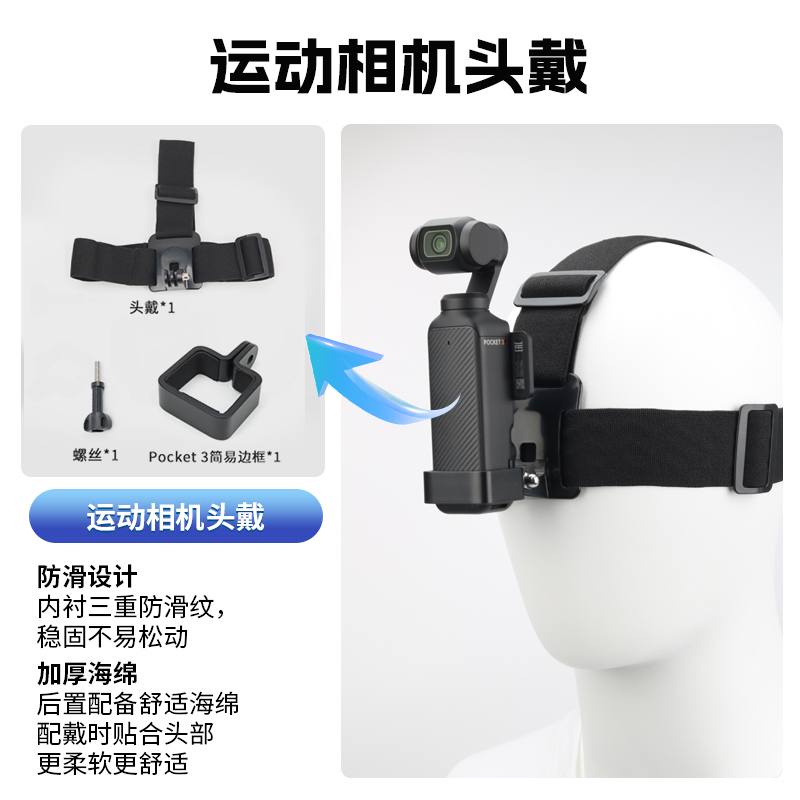 适用大疆Osmo Pocket3运动相机配件边框头戴胸带背包夹自拍杆三脚架挂脖支架户外摩托车骑行第一视角固定支架