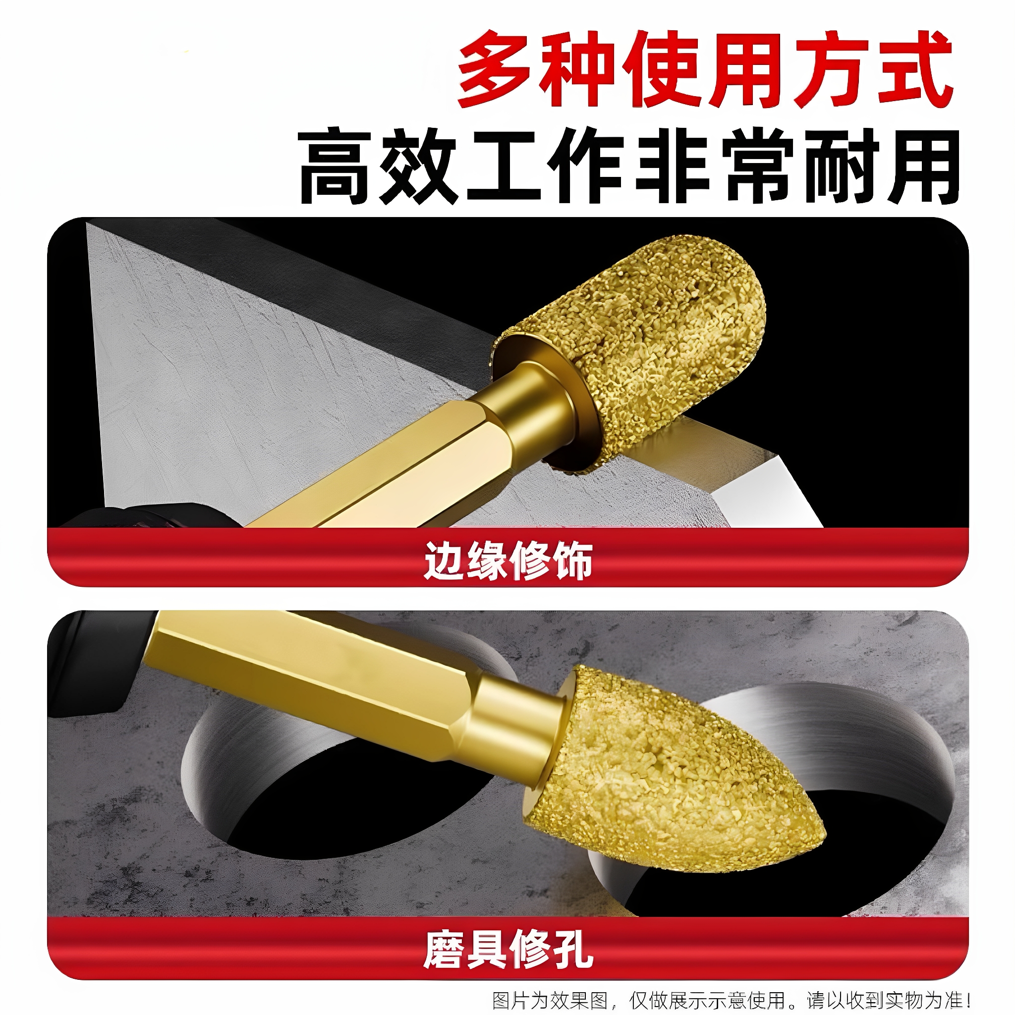 钎焊金刚石磨头六角柄硬质合金旋转锉铸铁石材手电钻钎焊打磨神器