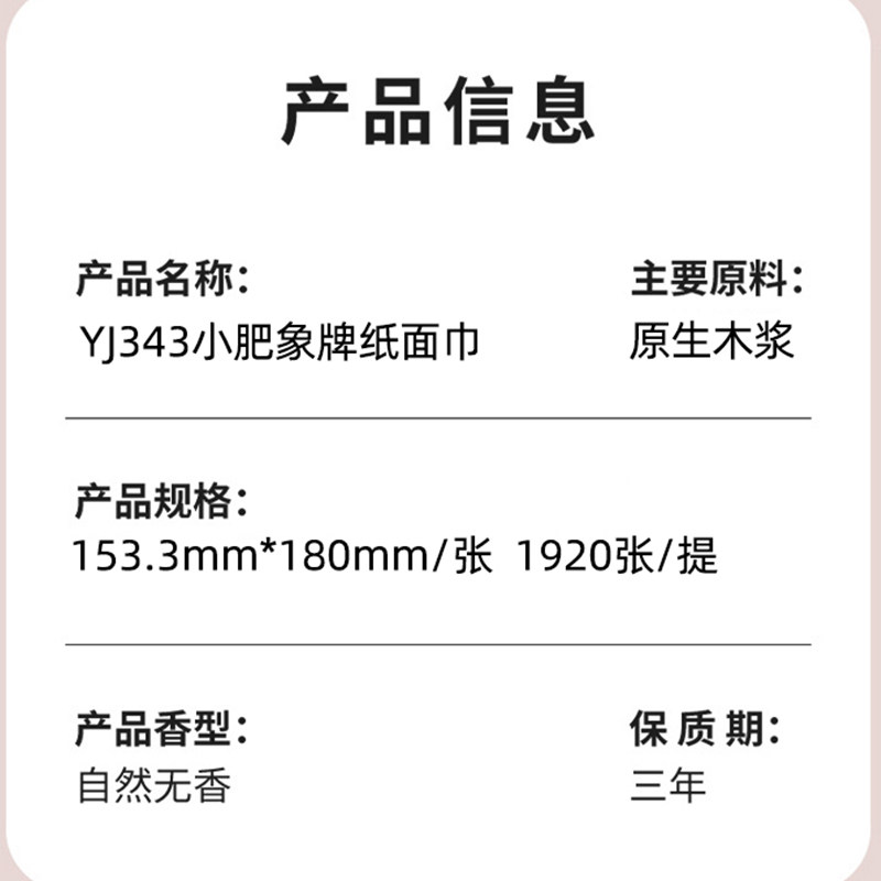小肥象底部悬挂式抽纸巾5层加厚1920张家用实惠装整箱批餐面巾纸