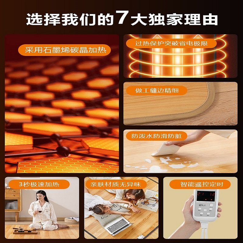 韩国石墨烯地垫智能地暖垫家用发热电热毯客厅加热地毯铺地板垫子