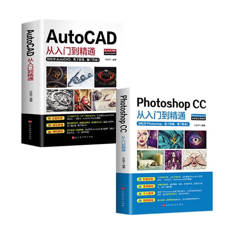 办公应用书籍全2册PhotoshopCC+AutoCAD从入门到精通机械设计制图绘图室内设计cad教程零基础自学视频教学计算机设计电气绘图书籍