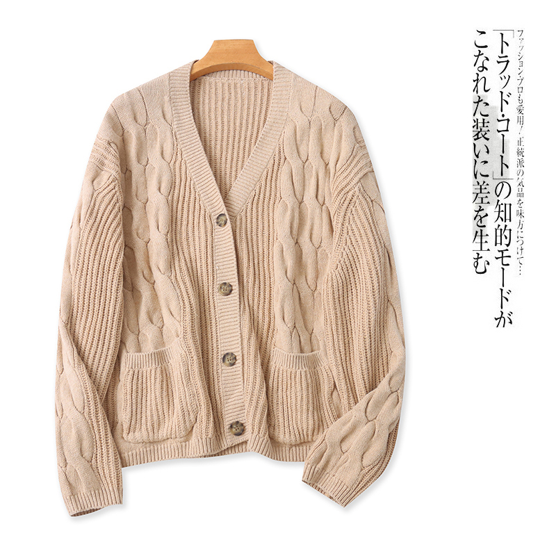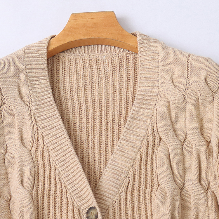 大版开衫毛衣 秋冬新款外贸女装时尚V领单排扣长袖麻花毛衣29392
